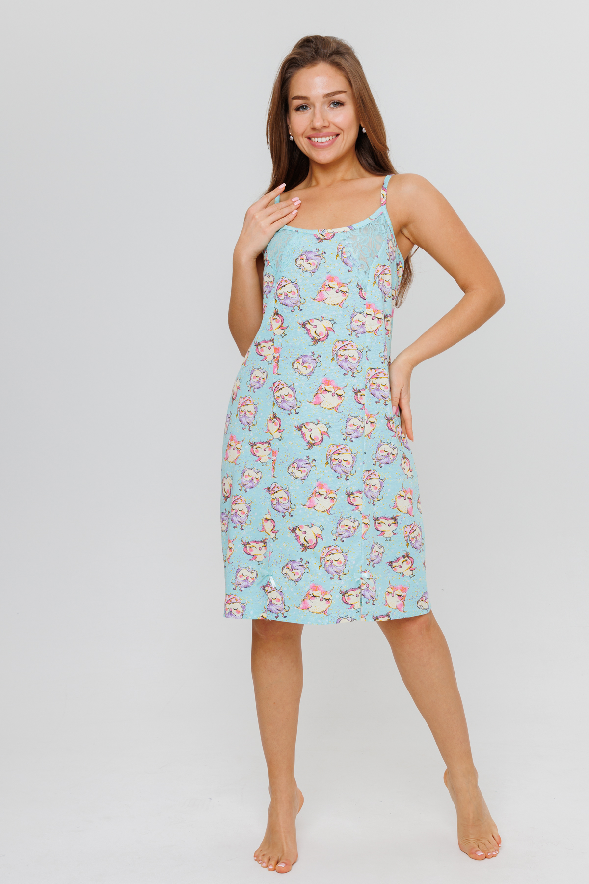 Нежная ночная сорочка из кулирки на бретельках.