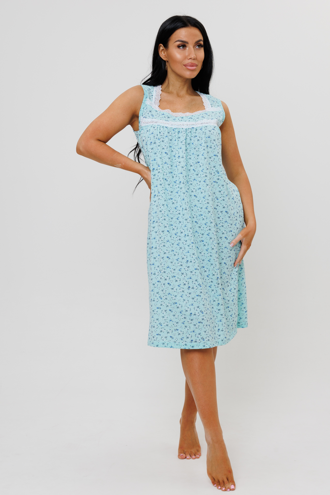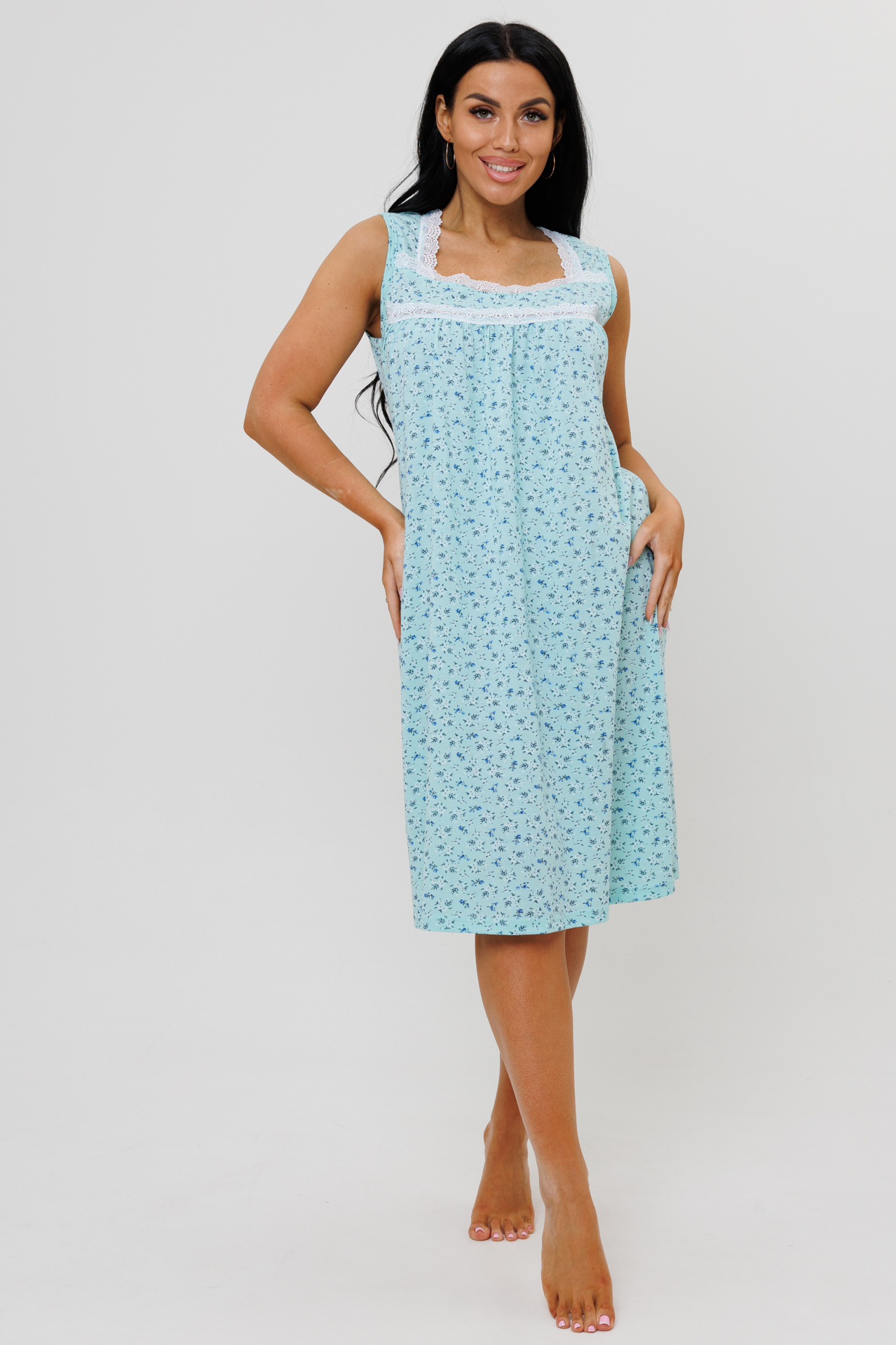 Женская ночная сорочка без рукава изготовлена из хлопкового трикотажа. Она мягкая, очень приятная на ощупь, обеспечивает хороший теплообмен. Большая размерная сетка, в том числе сорочки больших размеров, позволяет выбрать подходящий размер, обеспечивая максимальный комфорт и свободу движений. Прямой силуэт отлично подойдет и для беременных женщин. Горловина и кокетки на груди декорированы кружевом. Ночная сорочка без рукавов станет отличным подарком для любой женщины.
