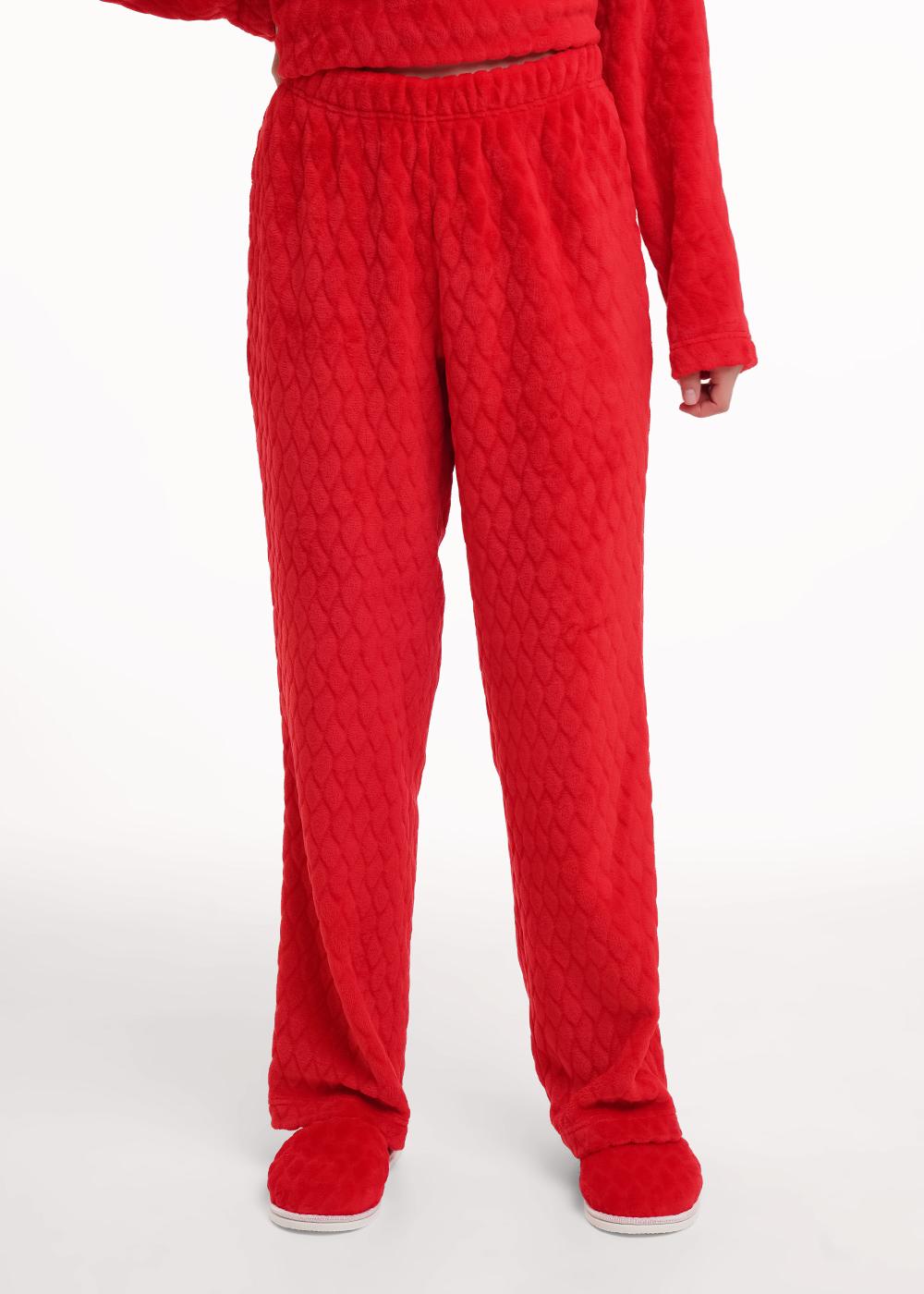 "Описание: Комплект для дома и отдыха из фактурного трикотажного полотна велсофт. Джемпер прямого силуэта. Длинный втачной рукав. Округлая горловина с вязаной обтачкой. Спереди нашивка. Брюки прямые на внутренней резинке.