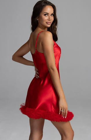 Короткая сорочка Mia-Amore без подреза на тонких регулируемых бретелях выполнена из мягкого искусственного шёлка. Низ сорочки украшен пышной многослойной сетчатой рюшей.