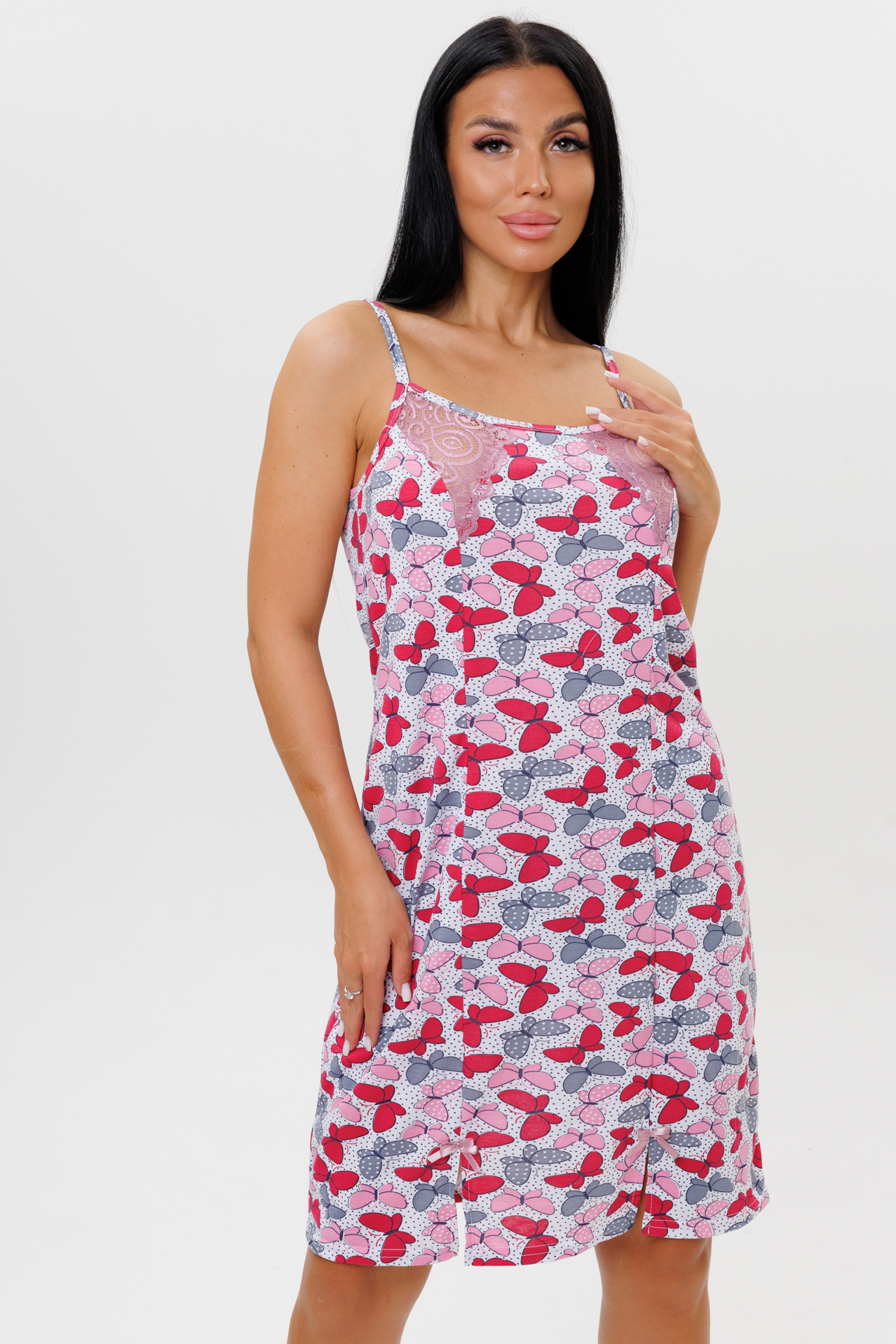 По низу изделия разрезы, дополненные атласными бантиками. Для более яркого подчеркивания фигуры в конструкции сорочки используются рельефы.