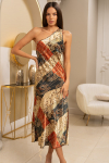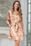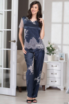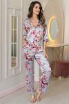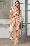 Элегантный комплект-тройка Mia-Amore из смесового шелкового полотна состоит из жакета, топа и брюк. Жакет свободного силуэта, с отложным воротником, с длинными рукавами и прорезными карманами в рамку. К жакету прилагается двухсторонний пояс. Топ на тонких бретелях, с отделкой по линии декольте. Жакет и топ выполнены из основного полотна, с роскошным восточным узором, в качестве отделки – ткань-компаньон и золотистый кантик, в цвет рисунка. Брюки выполнены полностью из ткани-компаньона, в боковых швах карманы.