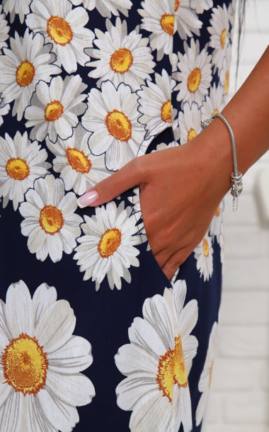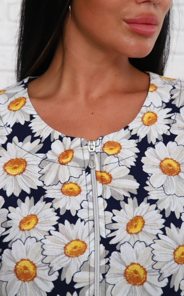 525 Халат на молнии р.48-50*60-62 темно-синий-белый-ромашка