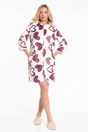 Женский халат из велсофта - очень мягкий и уютный. Прямой силуэт с молнией по центру и капюшоном делает халат одновременно удобным и стильным. Удобная длина рукава 3/4 обеспечит свободу движений, а карманы добавят практичности. Отделка швов бейкой из отделочного полотна придает халату завершенный вид и дополнительный стильный акцент. Велсофт известен своей мягкостью и приятной на ощупь текстурой, что делает этот халат идеальным для уютных моментов дома. Этот халат будет отличным выбором для расслабляющего и комфортного отдыха.