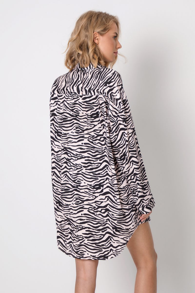 Очаровательная и вдохновляющая ночная рубашка Aisha из очень мягкой блестящей вискозы со смелым животным принтом. Ночная рубашка на пуговицах с воротником рубашечного типа, рукавами полной длины с кантом на манжетах и нагрудным карманом. Задняя часть ночной рубашки имеет удлиненную округлую форму для удобства движений. 100% вискоза