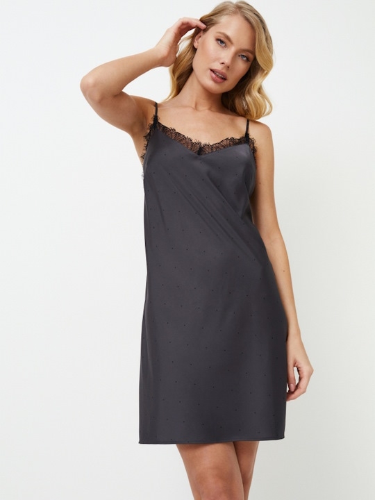 Графит 34(XS) Представляем ночную рубашку Aurora, в которой элегантность сочетается с очарованием. Это потрясающее изделие с регулируемыми бретелями для индивидуальной посадки, смелым V-образным вырезом сзади и изящными кружевными вставками вдоль декольте и по краю спинки. Ночная рубашка, выполненная из гладкой темно-серой ткани, украшенной тонкими черными точками, излучает изысканность. Длина платья выше колена придает ему неотразимый шарм. Наденьте ночную рубашку Aurora, чтобы провести вечер в чарующей элегантности, и сочетайте ее с платьем Aurora! 95% полиэстер, 5% эластан