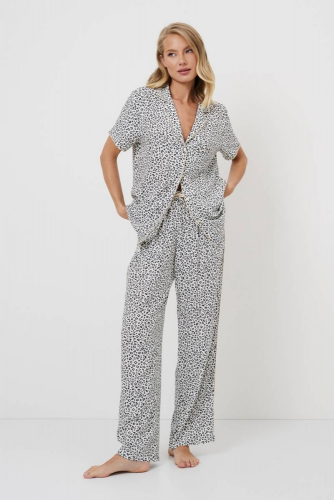 Белый+серый 34(XS), 36(S), 38(M), 40(L), 42(XL) Представляем вашему вниманию роскошную пижаму с шортами Bella, в которых роскошь и комфорт сочетаются в идеальной гармонии. Топ, сшитый из лёгкой шёлковой ткани, имеет регулируемые двойные бретели и округлый вырез. В сочетании с лёгкими вискозными шортами с серо-чёрным леопардовым принтом, с регулируемым поясом-бантом и окантовкой по краям. Подарите себе пижаму Bella, чтобы наслаждаться ночами в непревзойденном комфорте и изысканности, чувствуя себя ухоженной и шикарной от заката до рассвета. Состав топ 90% полиэстер, 10% шелк; шорты 100% вискоза.