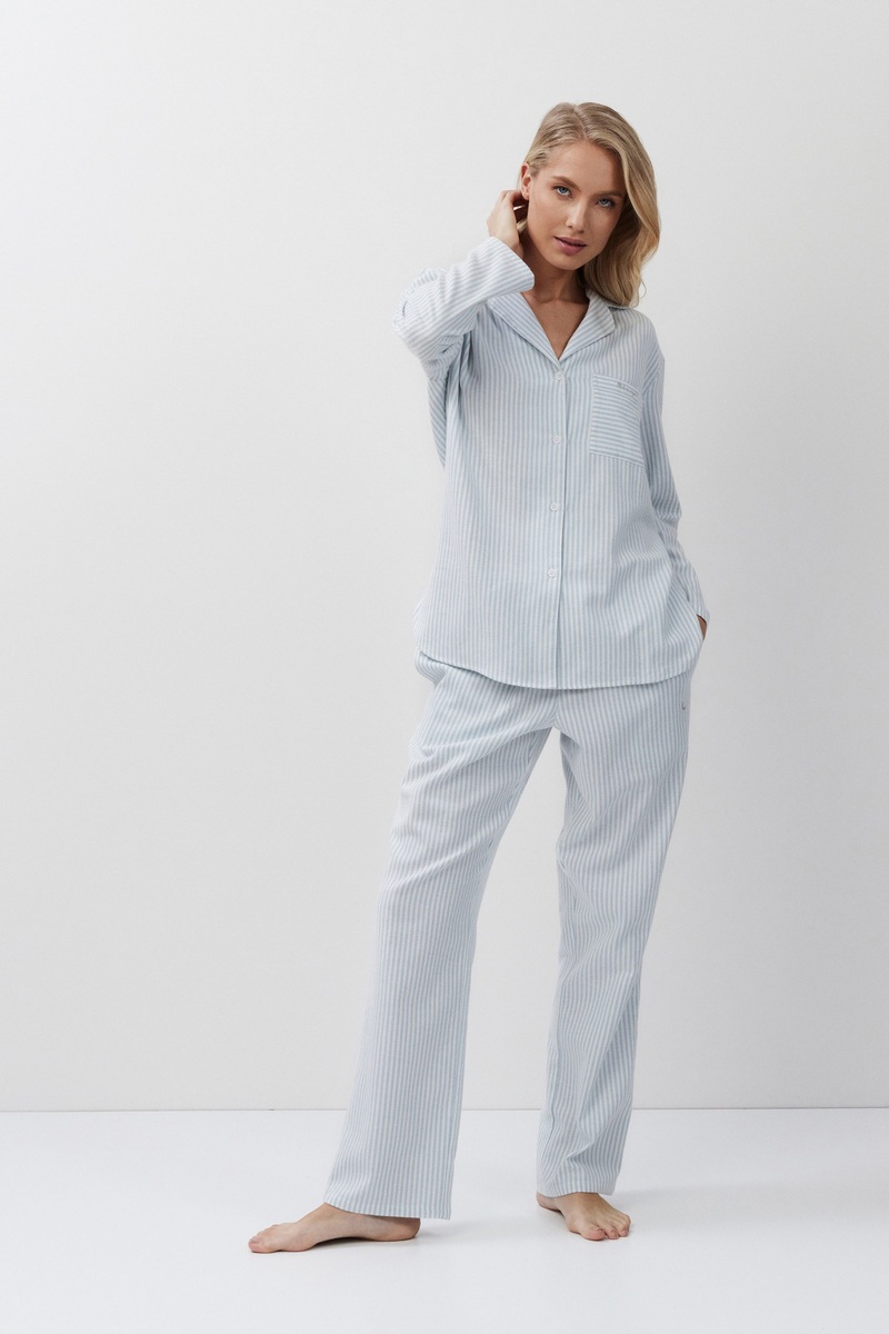 Пижама женская со штанами BROOKE для вашего ночного комфорта. Пижама выполнена из мягкого фланелевого хлопка. Рубашка на пуговицах, с длинными рукавами, отложным воротником и нагрудным карманом. Штаны свободные, с эластичным поясом с завязкой и двумя боковыми карманами. Расслабьтесь с максимальным комфортом и стилем в пижаме BROOKE. 100% хлопок