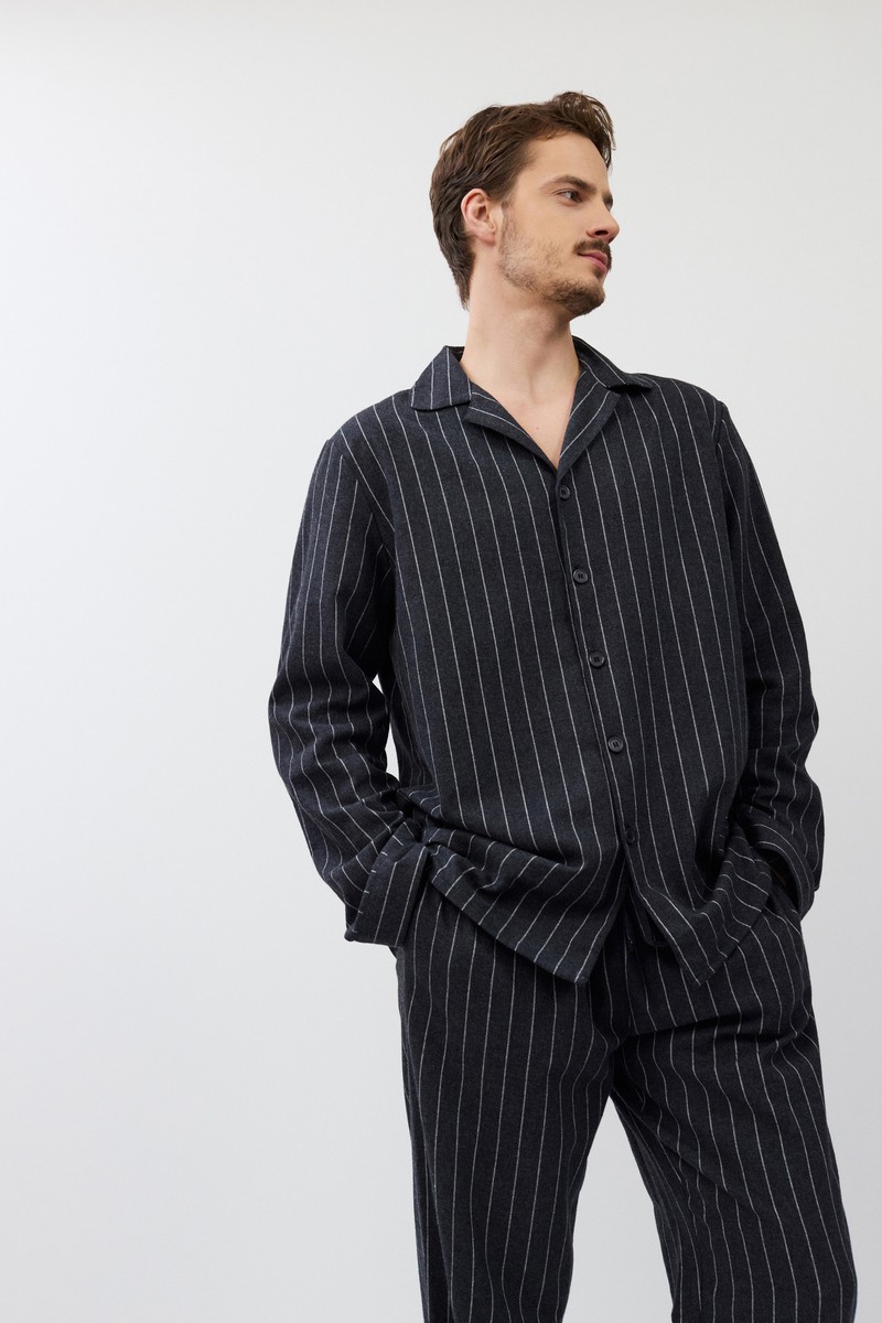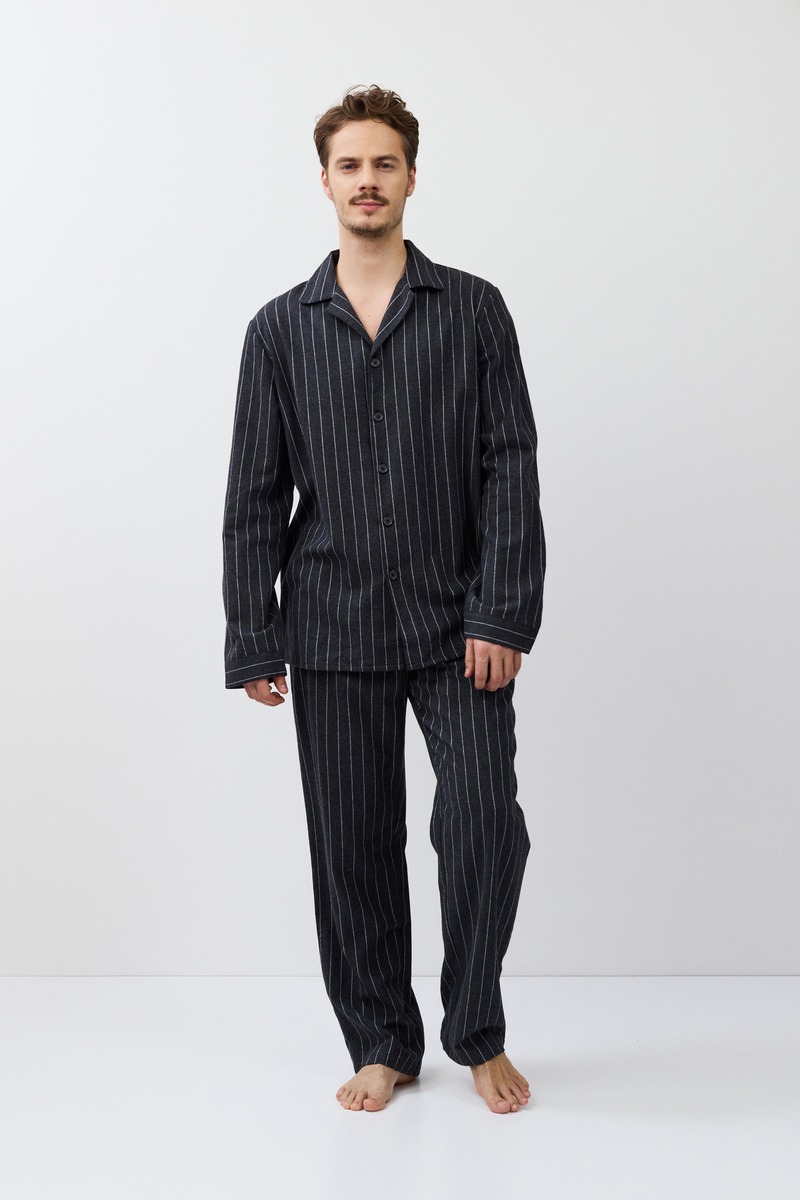 Пижама мужская со штанами CALEB для вашего ночного комфорта. Пижама выполнена из хлопковой фланели. Рубашка на пуговицах, с длинными рукавами, отложным воротником. Штаны длинные, свободной формы, с эластичным поясом с завязкой и боковыми карманами. Расслабьтесь с максимальным комфортом и стилем в пижаме CALEB. 100% хлопок