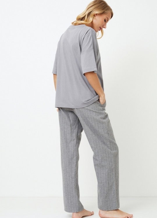 СЕРЫЙ 38(M) Представляем вашему вниманию длинную пижаму Clara, которая всегда будет незаменима для вашего ночного отдыха. Этот пижамный комплект, выполненный из мягкого хлопка спокойного серого оттенка в тонкую полоску, имеет классический вид, который никогда не выйдет из моды. Топ с короткими рукавами и круглым вырезом горловины украшен очаровательной вышивкой "УСТРАИВАЙСЯ ПОУДОБНЕЕ" по краю рукава. В сочетании с широкими брюками с удобными карманами этот комплект отличается сдержанной простотой. И не забудьте порадовать свою вторую половинку стильным нарядом — купите пижаму Carl pajama long, потому что кто сказал, что перед сном нельзя устроить показ мод для двоих?Футболка 50% хлопок, 50% модалБрюки 100% хлопок фланель.