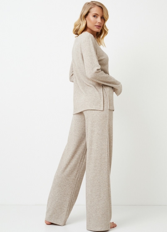 Бежево-серый 36(S), 38(M), 40(L), 42(XL) Представляем комплект Davina, который станет вашим идеальным выбором для непринужденного образа в стиле лаунж! Удлиненные рукава с боковыми разрезами и такие же боковые вырезы по фигуре дополнят ваш образ для отдыха. Широкие брюки обеспечивают неподвластный времени стиль и комфорт. Светло-коричневый цвет излучает тепло и уют, идеально подходит для того, чтобы расслабиться после долгого дня. Независимо от того, отдыхаете ли вы дома или выполняете поручения, в наборе Davina вы будете чувствовать себя комфортно и стильно. 79% полиэстер, 15% вискоза, 6% эластан