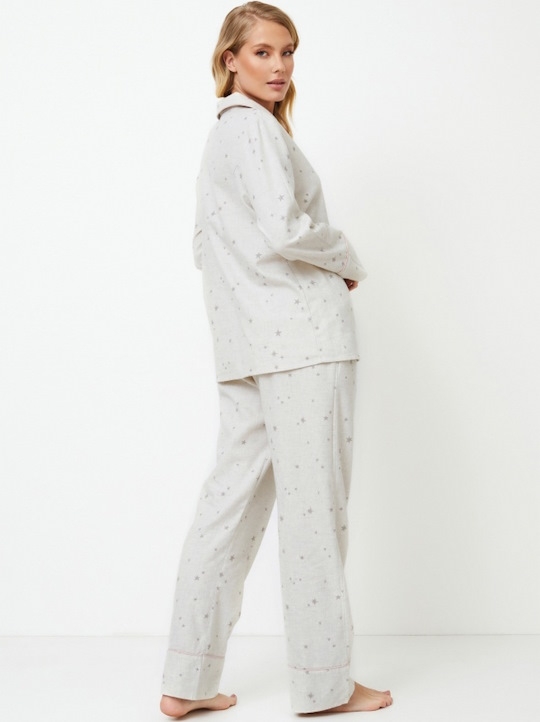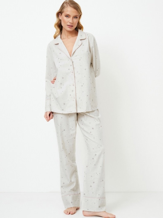 св.Серый 34(XS), 36(S), 38(M), 40(L), 42(XL), 44(XXL) Представляем длинную пижаму Dorothea, в которой комфорт сочетается с очарованием под звездным небом. Пижама выполнена из мягкого хлопка спокойного серого цвета с россыпью звезд. Топ с длинными рукавами на пуговицах, V-образным вырезом горловины и манжетами, украшенными розовой окантовкой. В сочетании с брюками обычного кроя, завязывающимися на талии розовым бантом, также с карманами, чтобы вы могли держать все необходимое под рукой. Брюки также украшены розовой окантовкой по низу. Почувствуйте уютную элегантность пижамы Dorothea, которая подойдет для стильных ночей, наполненных мечтами. И помните, что ношение этой пижамы практически гарантирует, что ваши сны будут такими же стильными, как и ваша одежда для сна! Изделие выполнено из хлопкового фланеля. 100% хлопок