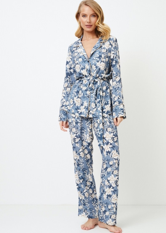 Серо-голубой 34(XS), 36(S), 38(M), 40(L), 42(XL), 44(XXL) Представляем длинную пижаму Francine, в которой цветочная элегантность превращается в блаженство перед сном. Пижама изготовлена из легкой вискозы, что обеспечивает комфорт и воздухопроницаемость в течение всей ночи. Топ с длинными рукавами и поясом застегивается на пуговицы, имеет привлекательный V-образный вырез горловины и манжеты рукавов, украшенные кантом. Брюки классического кроя с удобными карманами. Выполненный в спокойном нежно-голубом цвете с очаровательным цветочным рисунком, этот комплект привнесет красоту сада в ваш спокойный сон. Влюбитесь в чарующее очарование длинной пижамы Francine, идеально подходящей для того, чтобы заснуть в объятиях природы. 100% вискоза