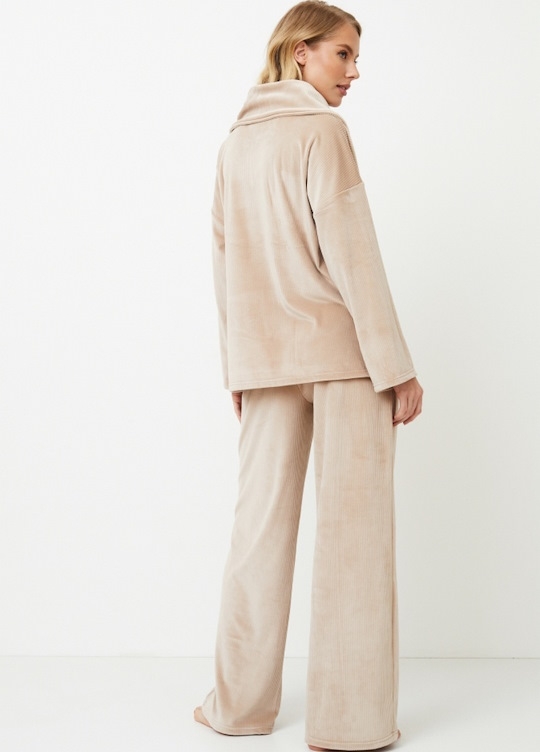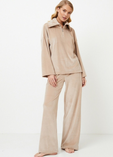 Латте 34(XS), 36(S), 38(M), 40(L), 42(XL), 44(XXL) Представляем комплект Quinn, в котором комфорт сочетается с королевским стилем! В топе с длинными рукавами, уникальной застежкой-молнией в форме короны и уютным высоким воротником вы почувствуете себя королевой, отдыхающей дома. Широкие брюки обеспечивают свободу движений и удобство благодаря карманам для предметов первой необходимости. Выполненный в бежевом цвете, этот комплект излучает неподвластную времени элегантность. Побалуйте себя набором Quinn и насладитесь комфортом и стилем! Материал велсофт в рубчик. 95% полиэстер, 5% эластан