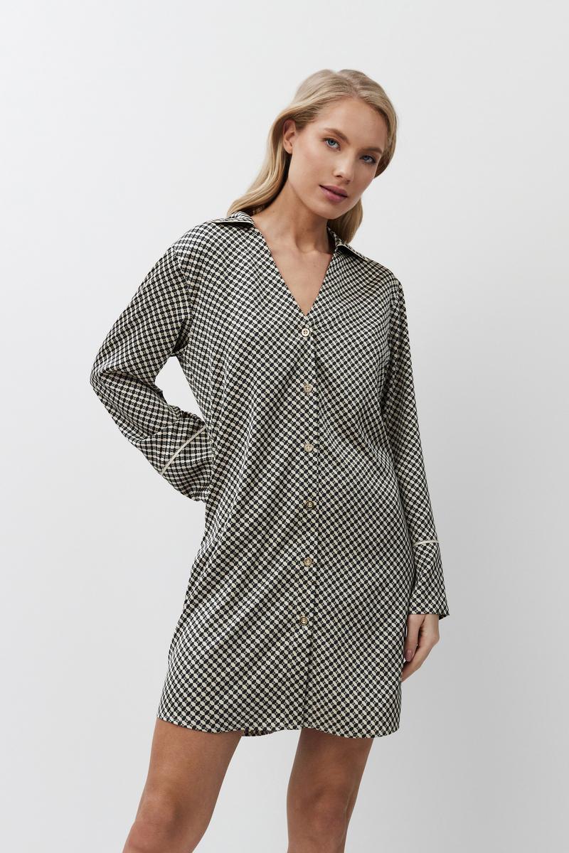 Сорочка женская ROMIE для максимального комфорта и расслабления. Выполнена из приятной к телу легкой шелковистой ткани. Сорочка рубашечного кроя, на пуговицах, с отложным воротником и V-образным вырезом. Рукава длинные, с окантовкой. Сорочка станет вашим идеальным спутником во время сна. 95% полиэстер/ 5% эластан