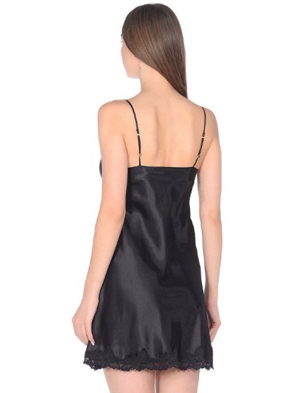 Оптовая продажа. Сорочка женская из из однотонного шелка полуприлегающего силуэта, расклешенная книзу, на тонких регулируемых бретелях, с отрезным лифом, чашки под грудью мягко собраны складочками, линия декольте украшена планочкой и атласным бантиком Низ изделия декорирован фигурным кружевом.