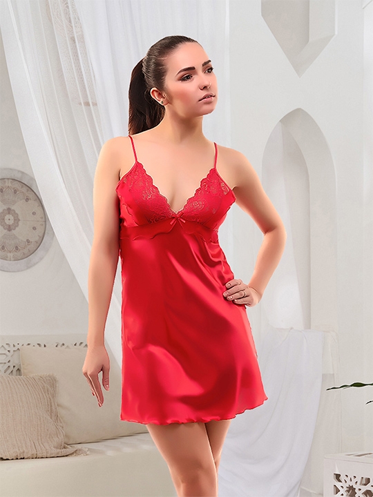 51 XL Сорочка на узких бретелях, передняя деталь декорирована кружевом. полиэстер - 90%, эластан - 10%