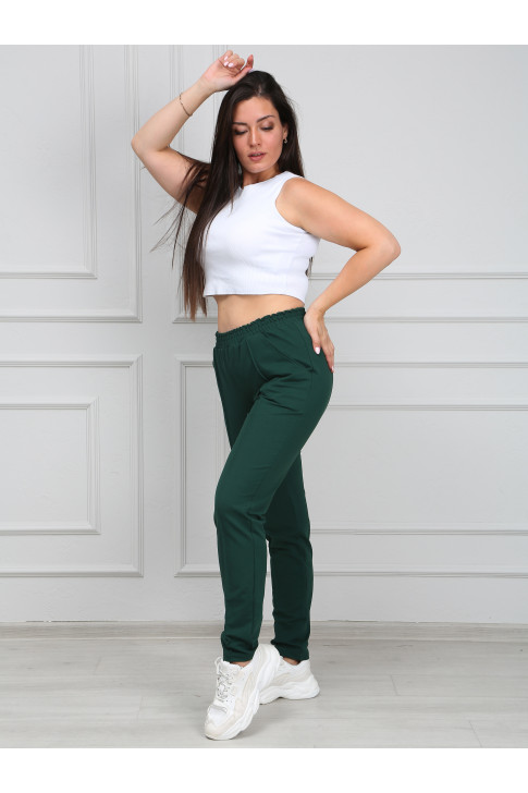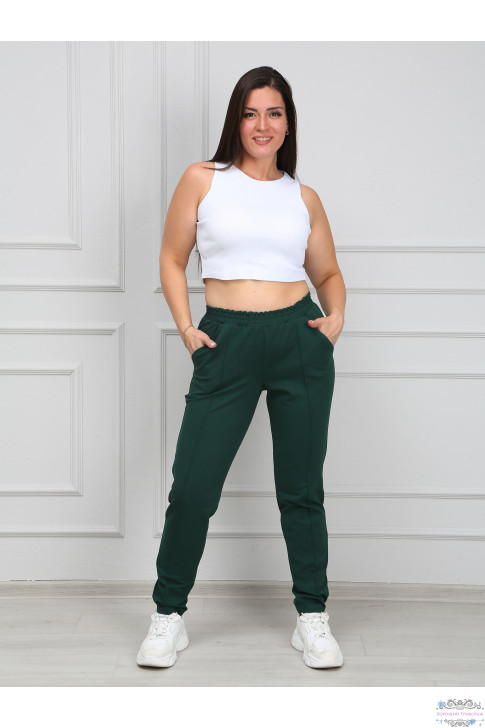 Брюки женские со "стрелкой". Зауженный крой, два боковых кармашка, пояс на широкой резинке. Очень удобные, не сковывают движений, за счет состава ткани, не мнутся и не теряют форму. Мягкая ткань футер 2-х нитка.