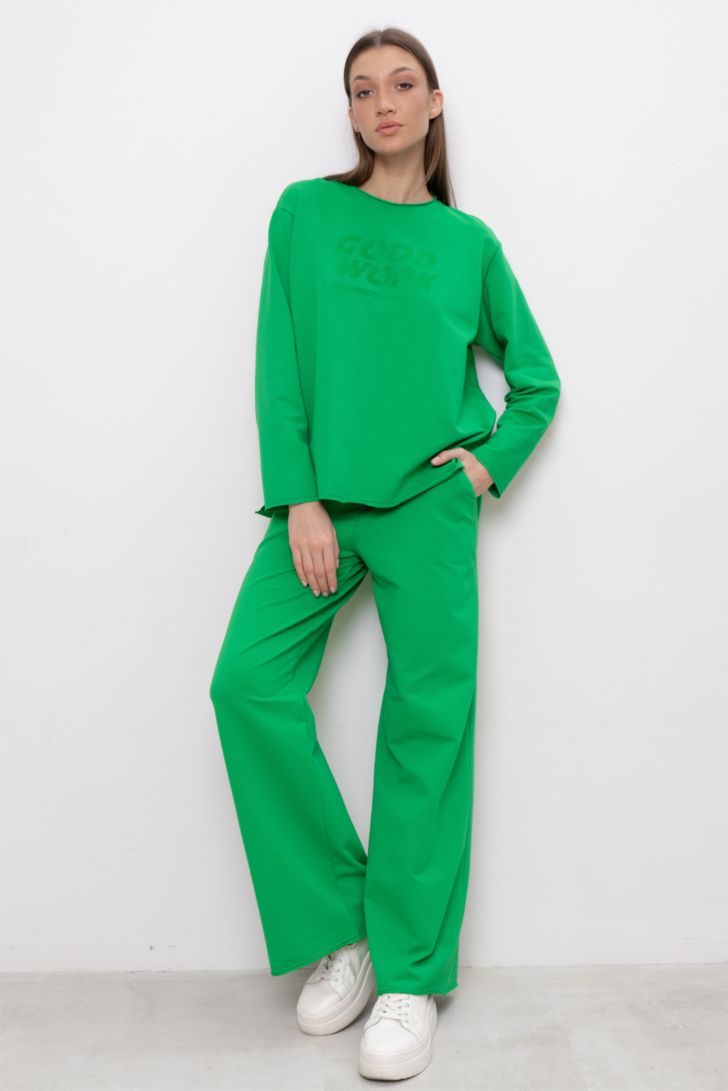 По низу брюк обработка «открытый срез». Брюки дополнят образ к футболкам и худи из данной коллекции.