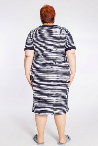 Халат с застёжкой на молнию выполнен из кулирки с рисунком в полоску с отделочными вставками из однотонного полотна. Халат с короткими рукавами и карманом спереди, в качестве дополнительной отделки используется широкая бейка.