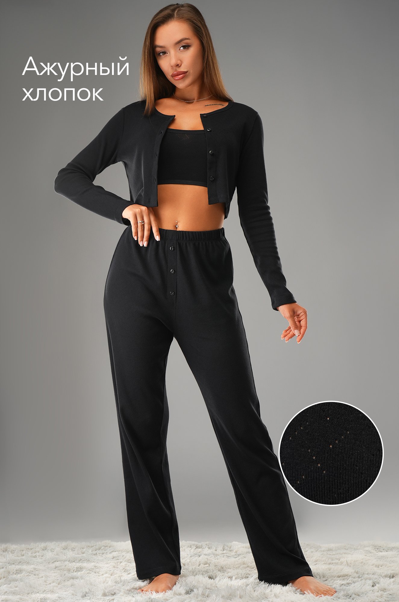 Хлопковая пижамка для девушек и женщин – прекрасный вариант для домашних образов. Черный пижамный комплект адаптируется под настроение: можно носить весь набор или комбинировать элементы между собой.