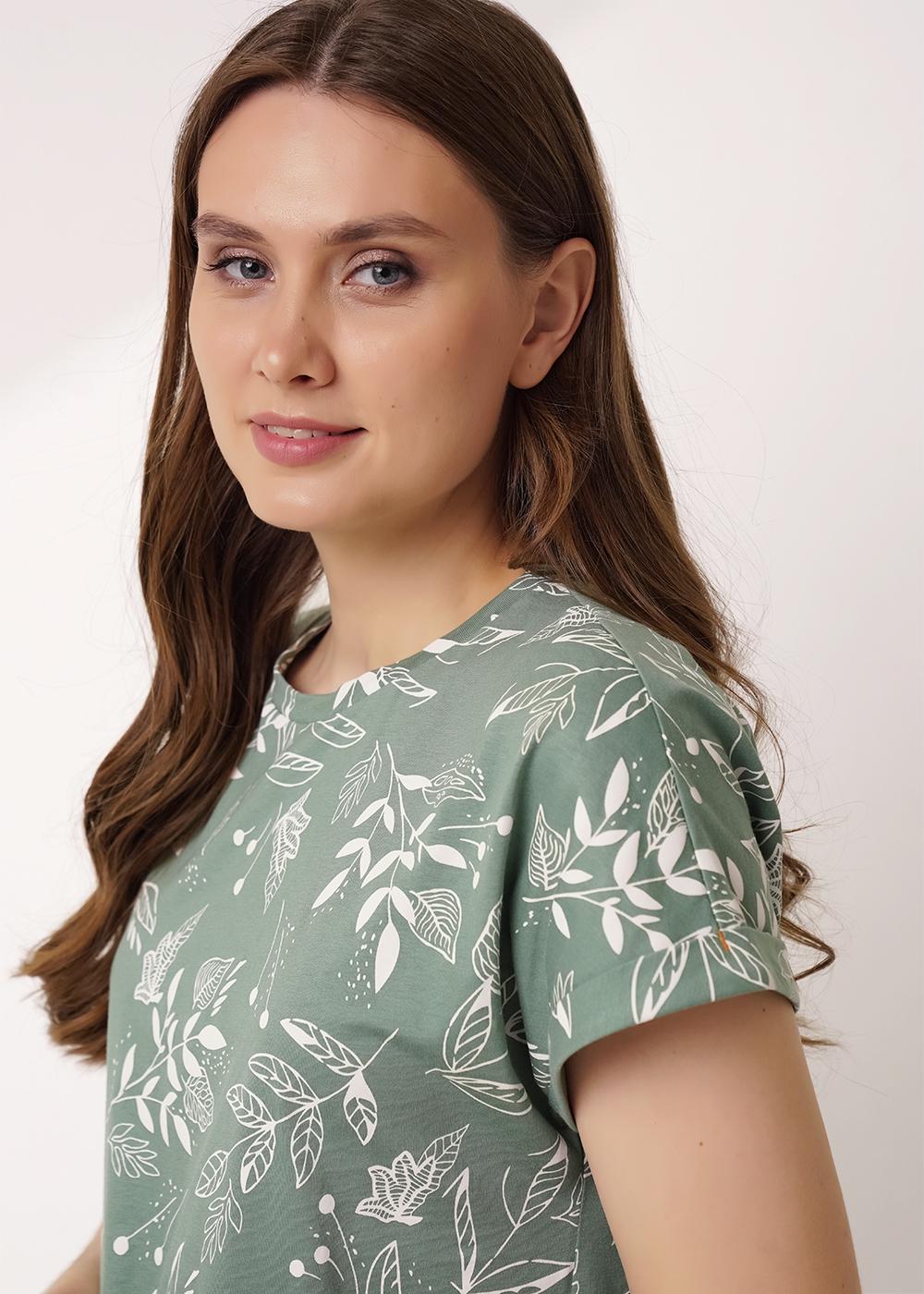 "Описание: Платье для дома и отдыха из хлопкового трикотажного полотна, прямого силуэта. Цельнокроеный короткий рукав, по низу рукава отворот с контрастными закрепками. Округлая горловина с обтачкой.