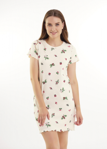 CLE LDR15-1200/1 Платье женское для дома LDR15-1200/1 молочный/красный