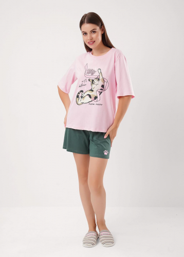 CLE LDR15-1208/1 Платье женское для дома LDR15-1208/1 оливковый/св.розовый