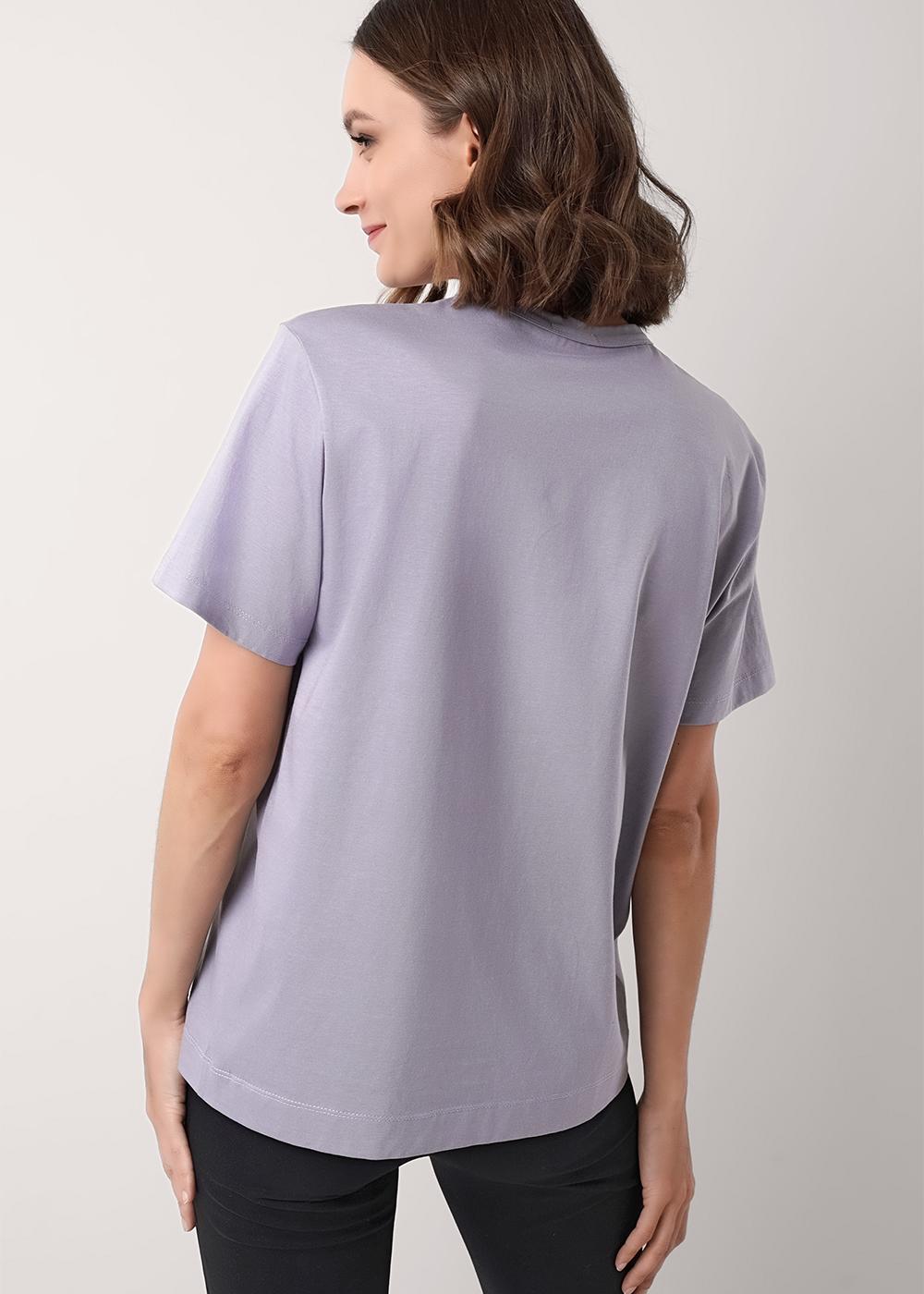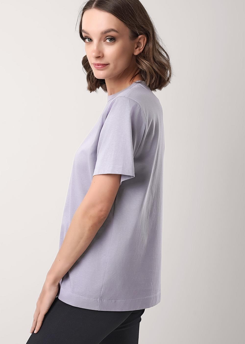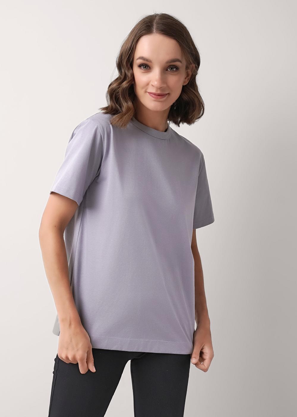 Футболка женская из трикотажного хлопкового полотна. Классический прямой крой. Округлая горловина с окантовкой. Короткий втачной рукав.
