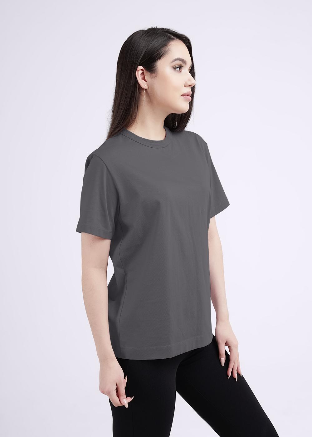Футболка женская из трикотажного хлопкового полотна. Классический прямой крой. Округлая горловина с окантовкой. Короткий втачной рукав.