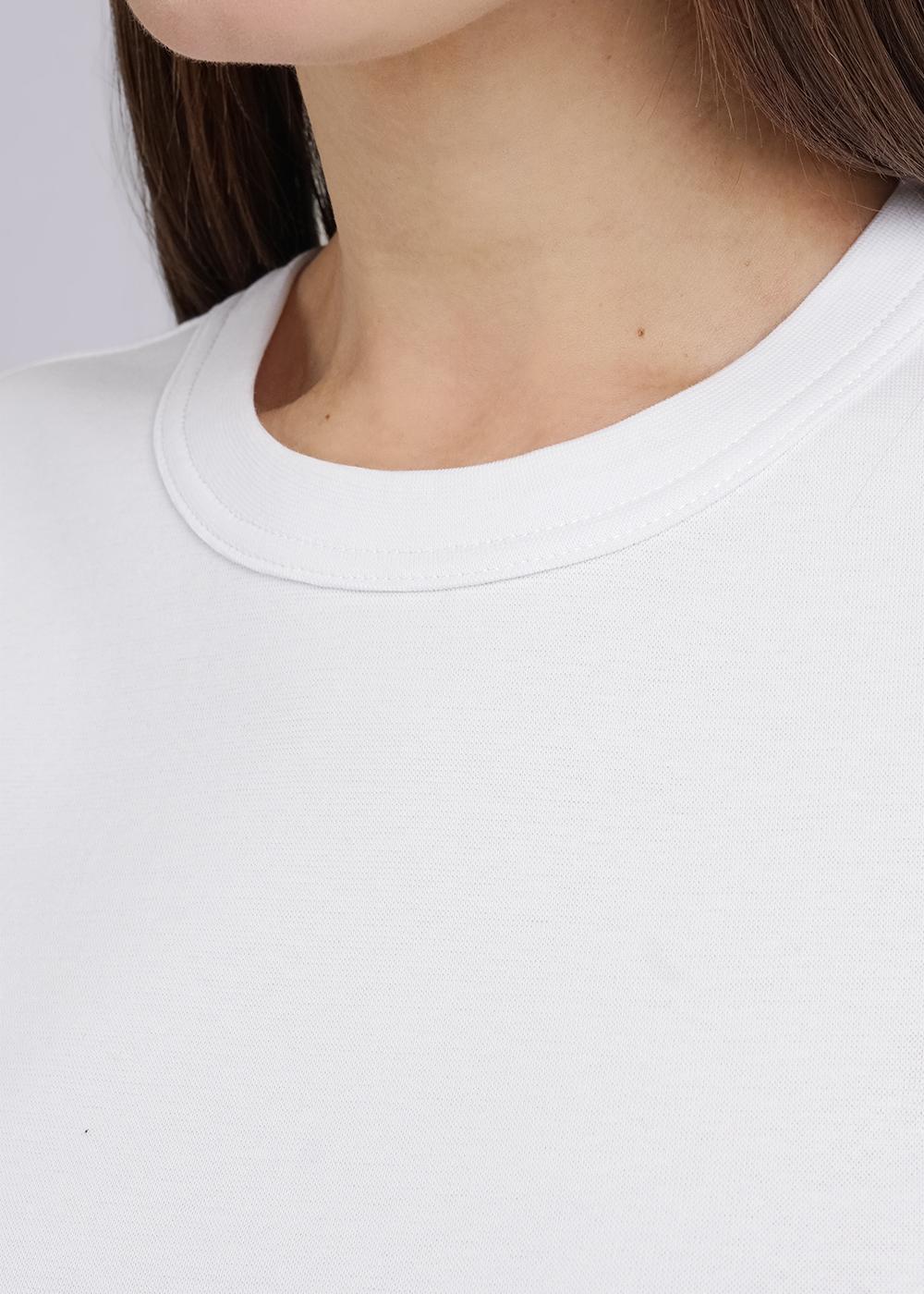 Джемпер женский из эластичного хлопкового полотна - рибана. Приталенный крой. Круглый вырез горловины. Короткий втачной рукав.