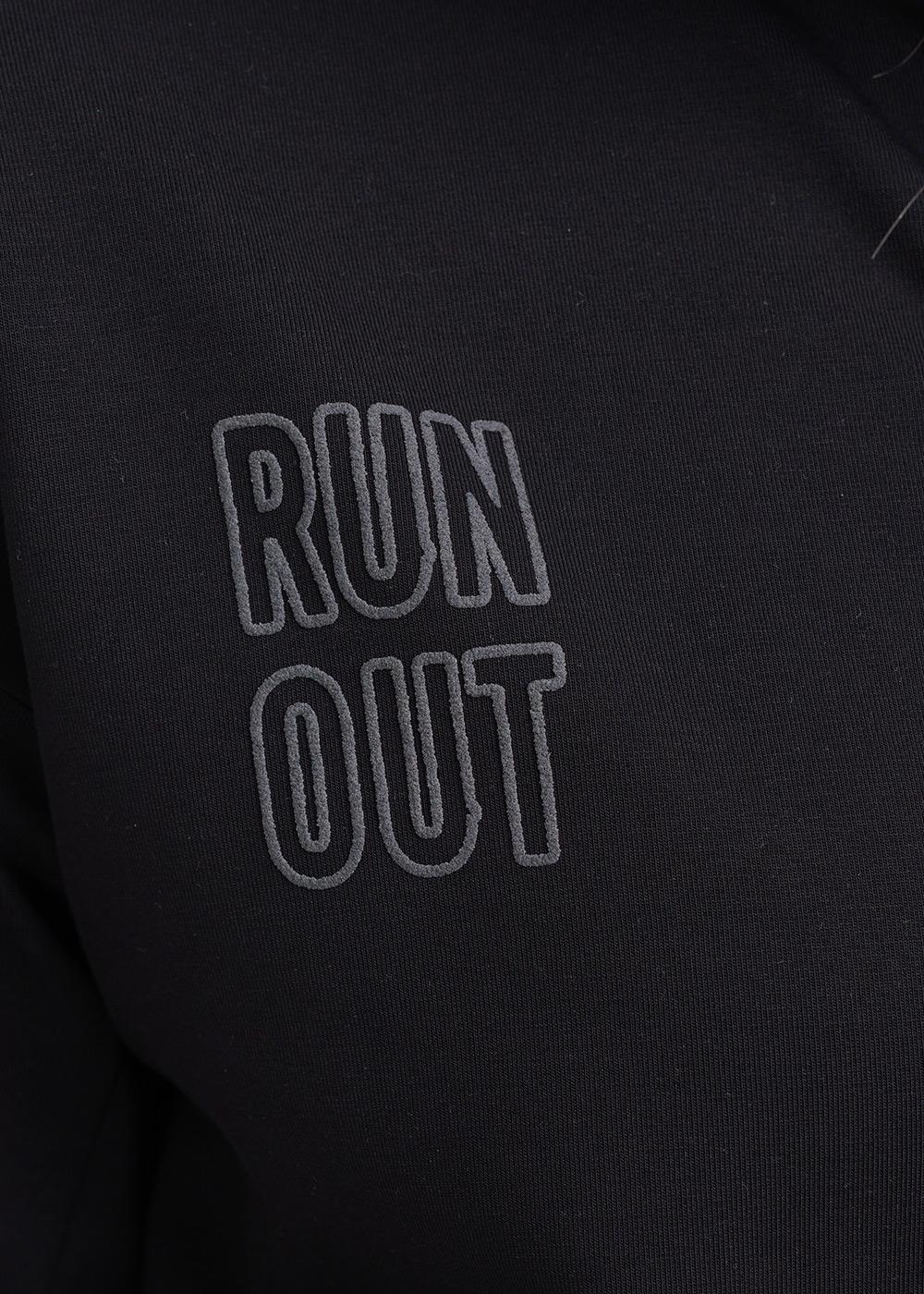 Куртка со спущенным длинным рукавом имеет центральную застежку на молнию, накладные карманы и капюшон со шнуром внутри. Изделие выполнено из полотна футер, декоративными элементами являются принт, перевод- выбегать и логотип-вшивка на одном из карманов.