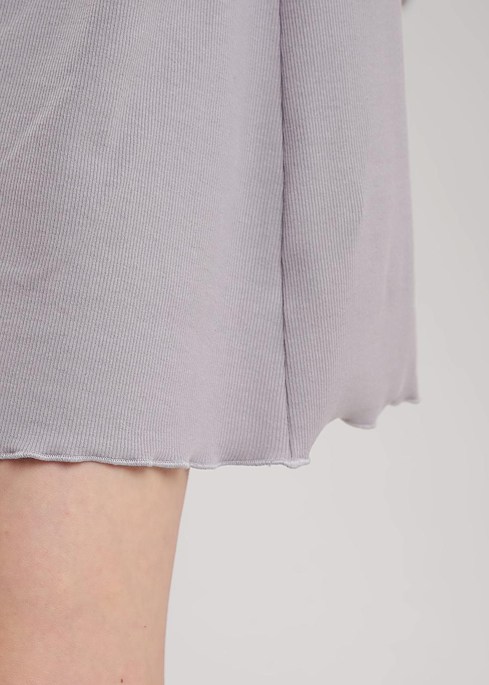 Сорочка ночная А-образного силуэта из трикотажного полотна кашкорсе лапша. Длиной чуть ниже колена, на узких бретелях. По горловине и пройме окантовка. По низу изделия мелкий оверлок.
