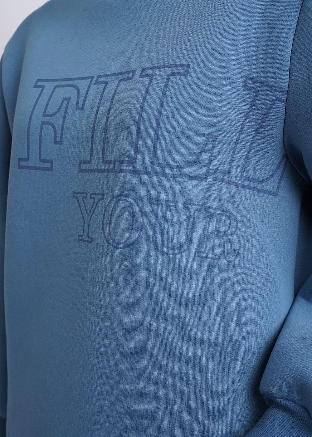 Толстовка из футера с начесом объёмная с втачным рукавом. Длинный рукав, низ которого обработан притачной манжетой из ткани кашкорсе . Горловина обработана высокой стойкой из кашкорсе. завершает дизайн крупный принт на детали переда.