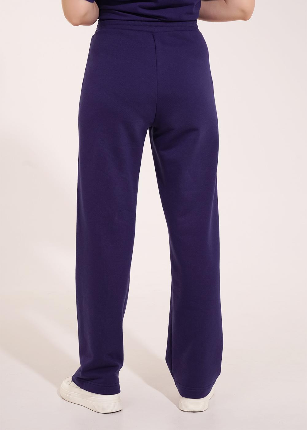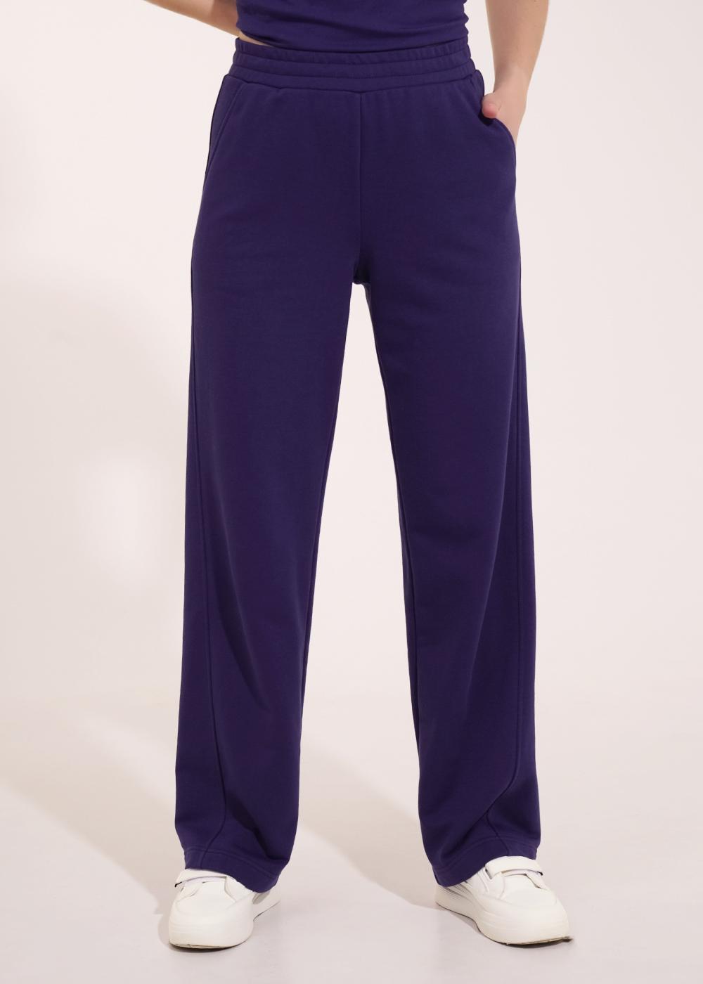 Брюки прямые спортивные из трикотажного полтна футер. По талии притачной пояс на внутренней резинке. Боковые карманы с отрезным бочком. Боковые швы переходят на перед.