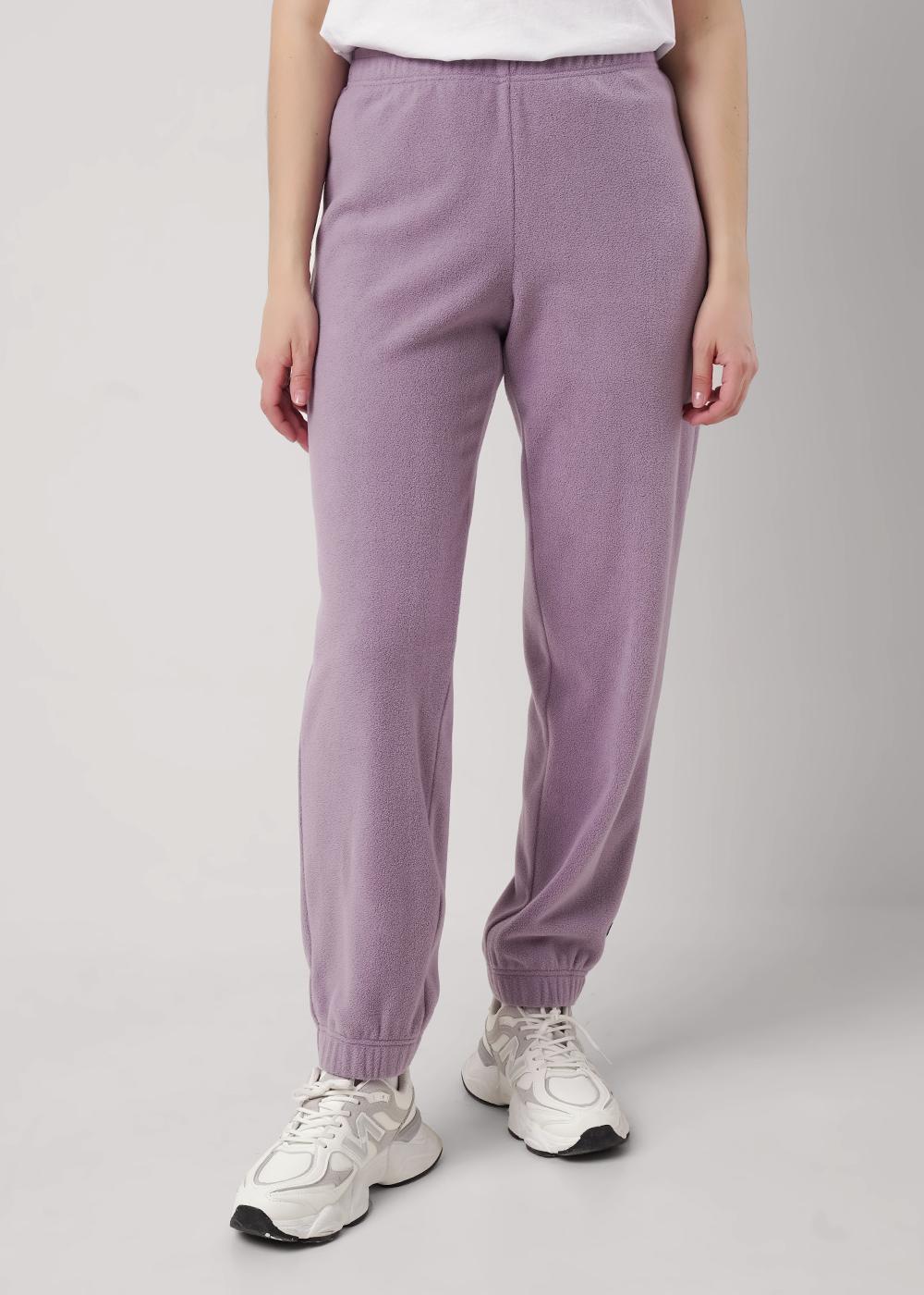 Брюки прямые из трикотажного полотна флис, с внутренней резинкой по талии и низу. Внизу брюк нашивка.