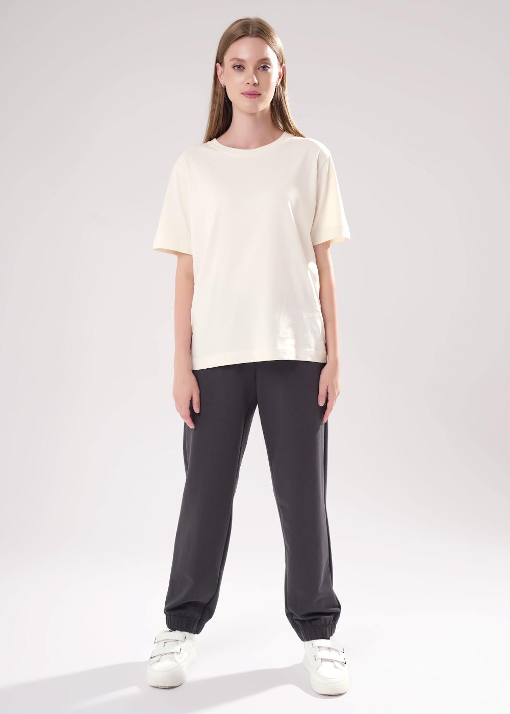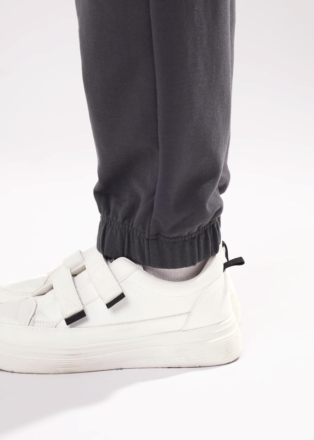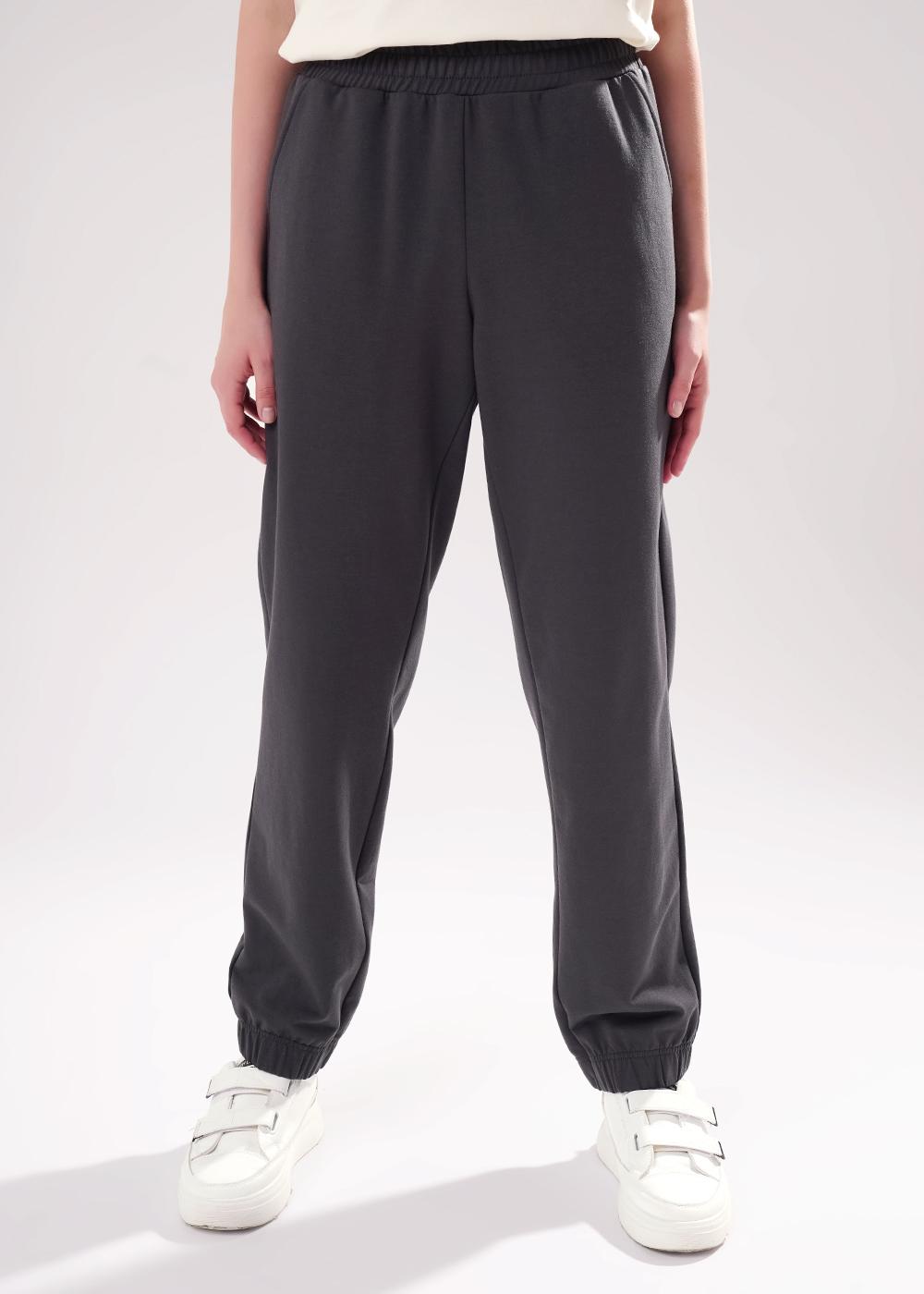 Брюки спортивные из трикотажного полотна футер с начесом,зауженные книзу. По талии пояс на резинке и внутренним шнуром. По низу брюк подгибка с внутренней резинкой. Боковые карманы с отрезным бочком.
