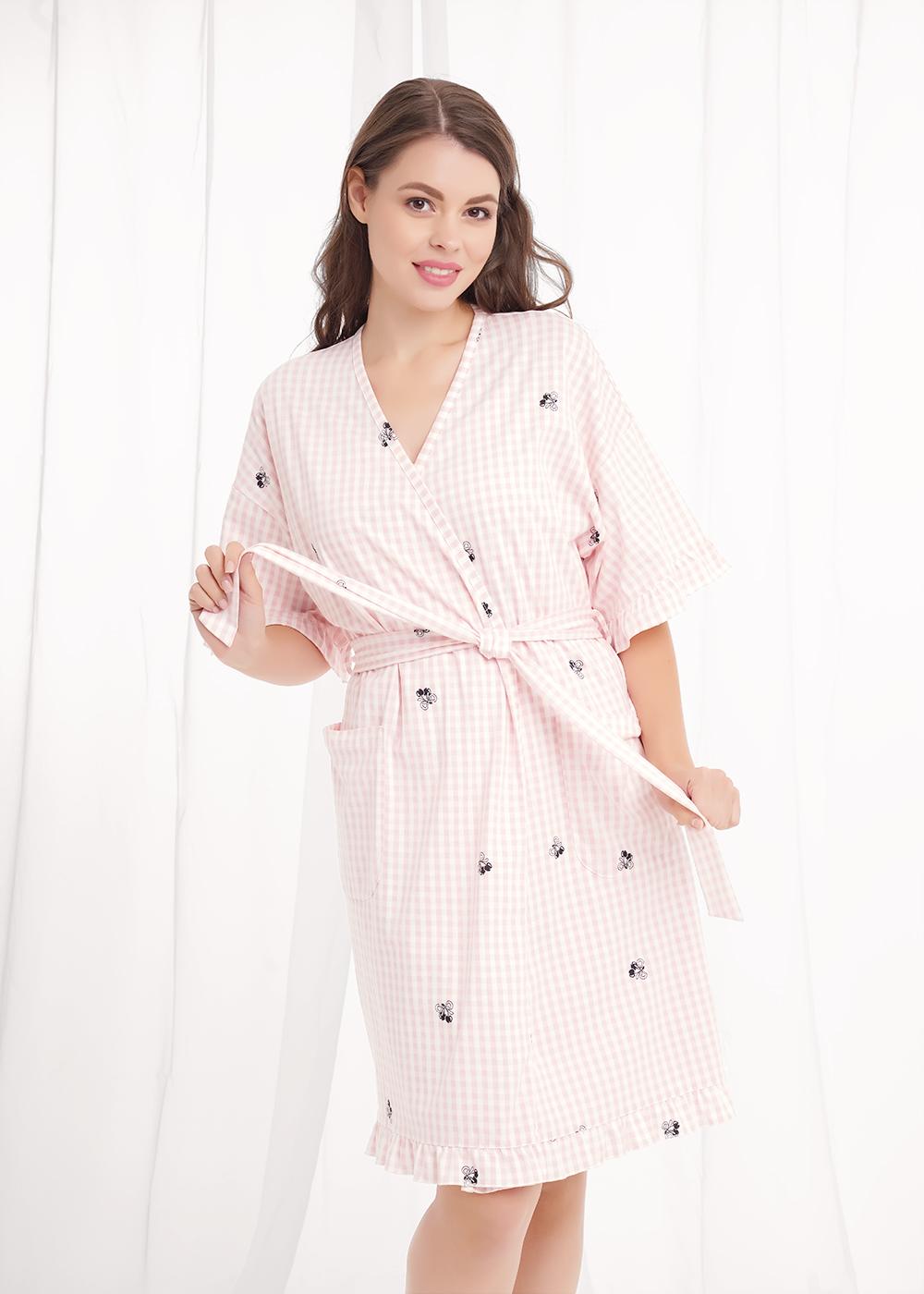 CLE LX26-1210 Халат женский LX26-1210 белый/св.розовый