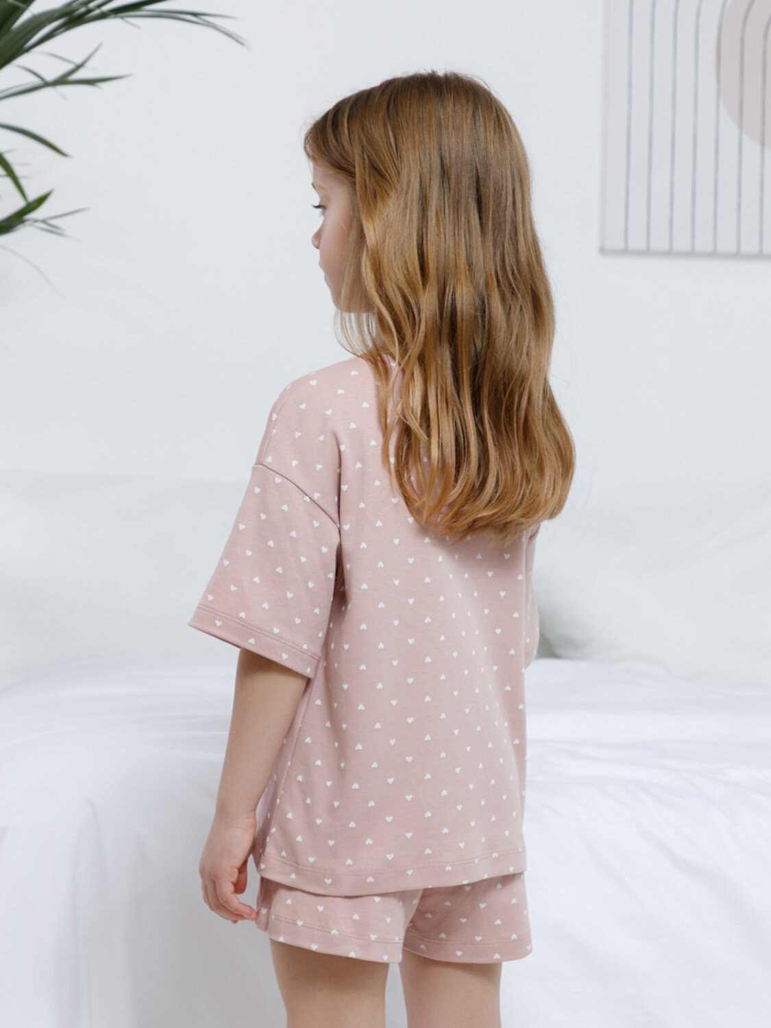 Трикотажная пижама из натурального хлопка для комфортного сна и отдыха. Футболка с короткими спущенными рукавами и шорты с мягкой эластичной резинкой в поясе. Оригинальная набивка и принт выполнены из стойких текстильных гипоаллергенных красителей. Изделие сохраняет цвет и форму после многократных стирок. Все трикотажные полотна производятся в соответствии с нормами швейцарского сертификата ЭкоТекс.