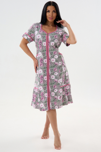 Уютный и удобный домашний женский халат из легкой хлопковой ткани создан для настоящих ценительниц качества и стиля! Это именно та домашняя одежда, в которой комфортно готовить еду, заниматься уборкой, стиркой и прочими бытовыми делами. Дизайн ткани представляет собой комбинацию принта с ярким цветочным рисунком, переходящим в модную леопардовую расцветку. Халат застегивается на молнию, поясок завязывается сзади. Короткий рукав позволяет носить халат в жаркое время года дома и на даче.