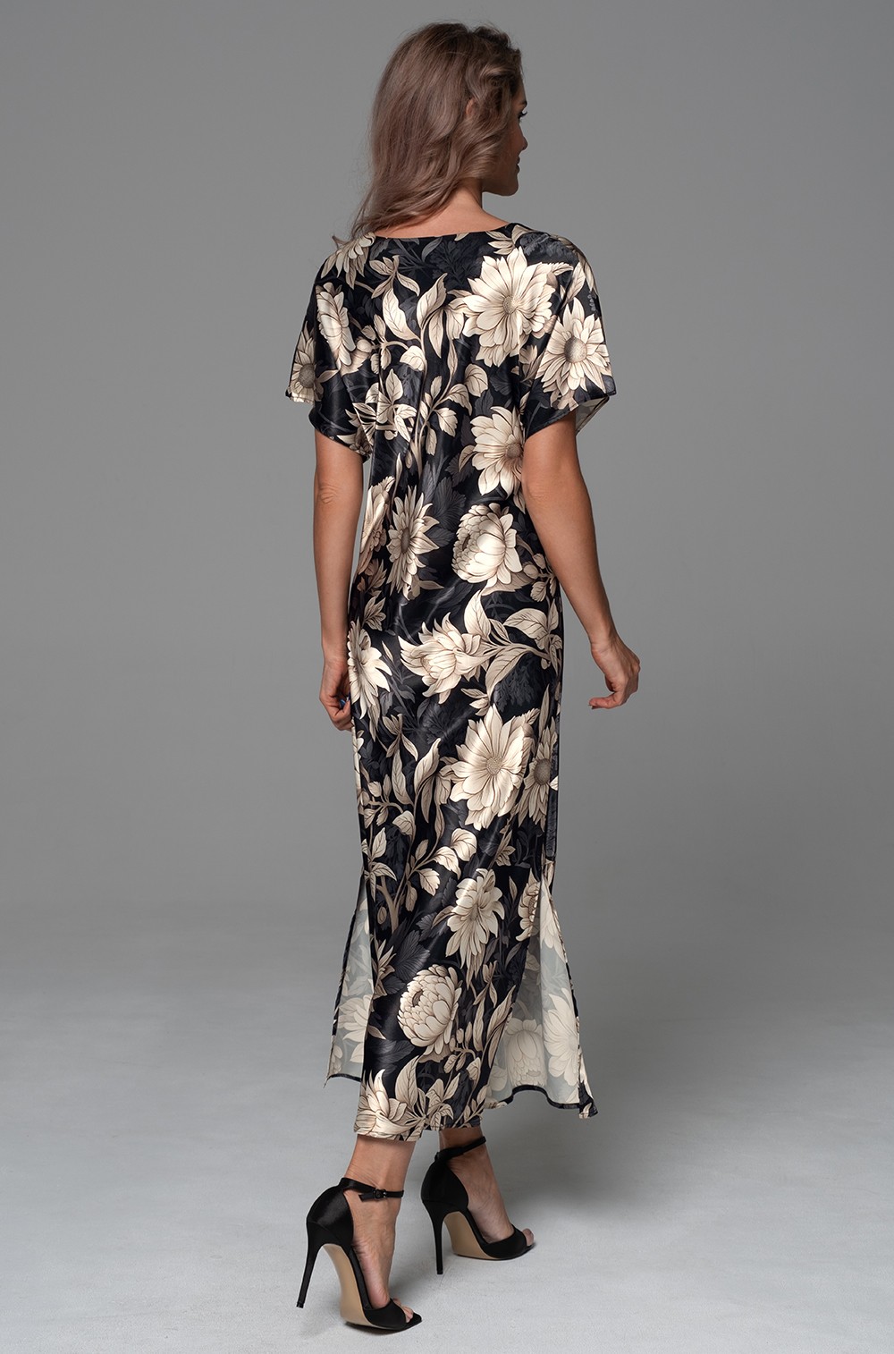 Элегантная длинная сорочка Mia-Amore полуприлегающего силуэта с коротким рукавом. Изделие выполнено из принтованного смесового шелка. По бокам расположены разрезы, для свободы движения.