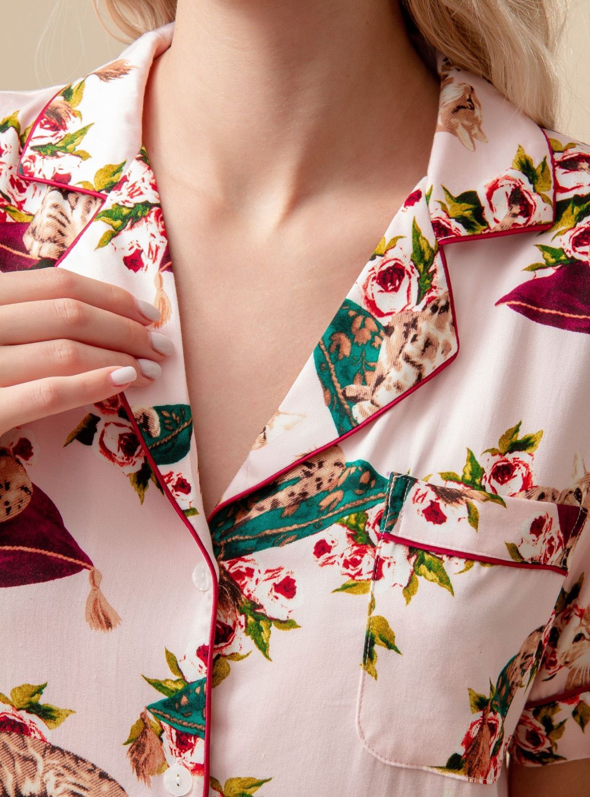 Пижама женская вискозная торговой марки Indefini. Женская пижама из вискозы розового цвета с принтом - идеальный выбор для комфортного и крепкого сна. Вискоза - натуральная ткань, которая обладает отличными дышащими свойствами и мягкостью на ощупь.Такая пижама отлично подойдет для вечернего отдыха дома и прогулок. Она обеспечит вам максимальный комфорт и приятные ощущения.Из-за своего стильного внешнего вида и приятных тактильных ощущений, эта пижама также может быть идеальным подарком для вашей подруги, сестры или мамы.
