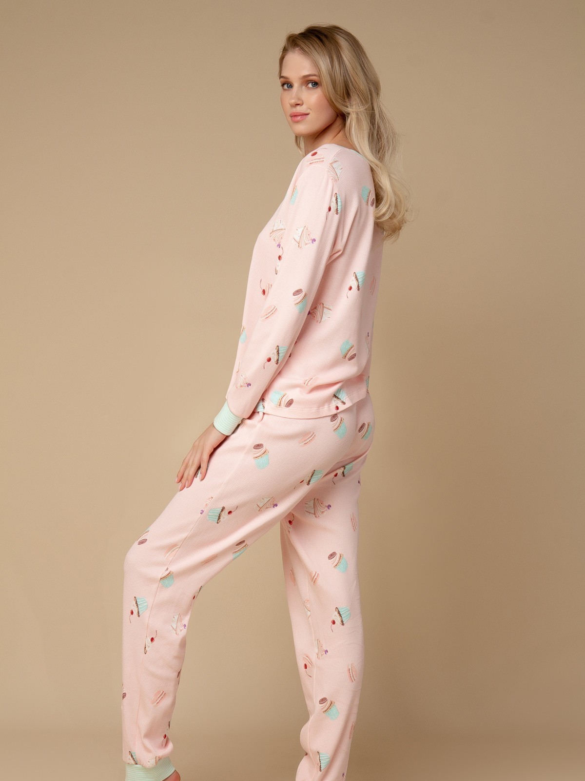 Принт с изображениями пирожных придаёт модели игривый и позитивный вид."