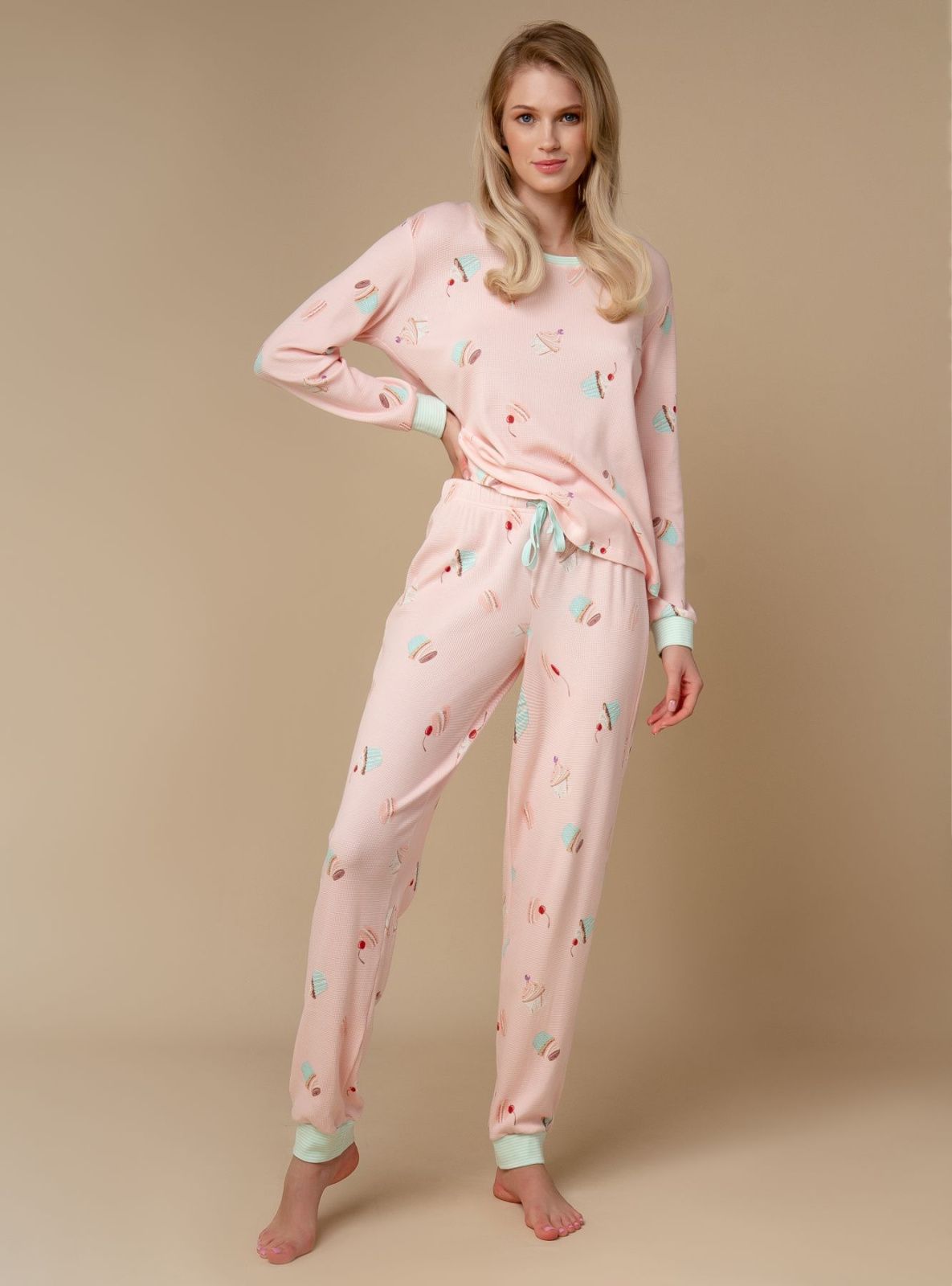 "Пижама женская 3265TCC бренда Indefini, составленная из мягкого хлопка и вискозы, включает кофту и брюки.