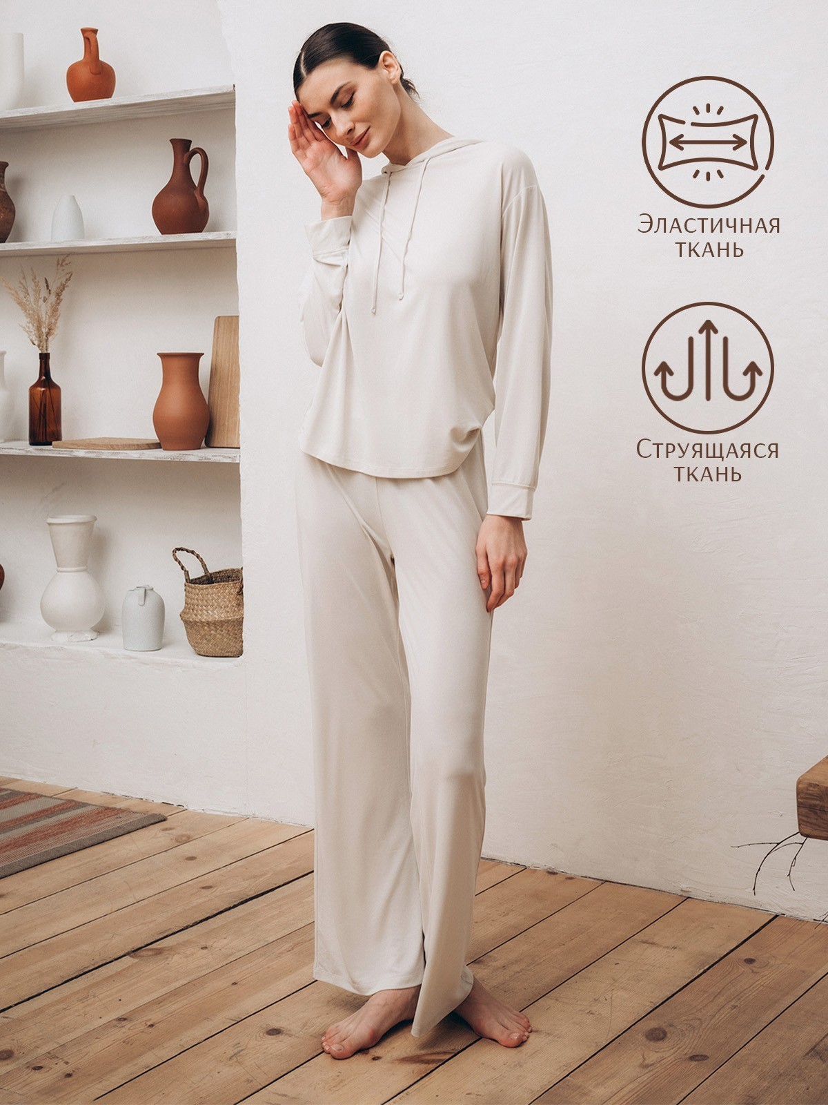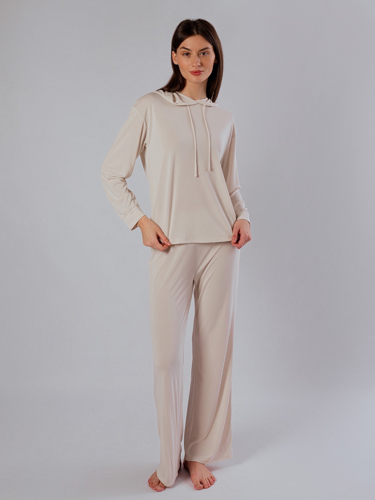 Пижама женская 5006TCC бренда Indefini молочного цвета изготовлена из трикотажного модала с добавлением полиэстера.