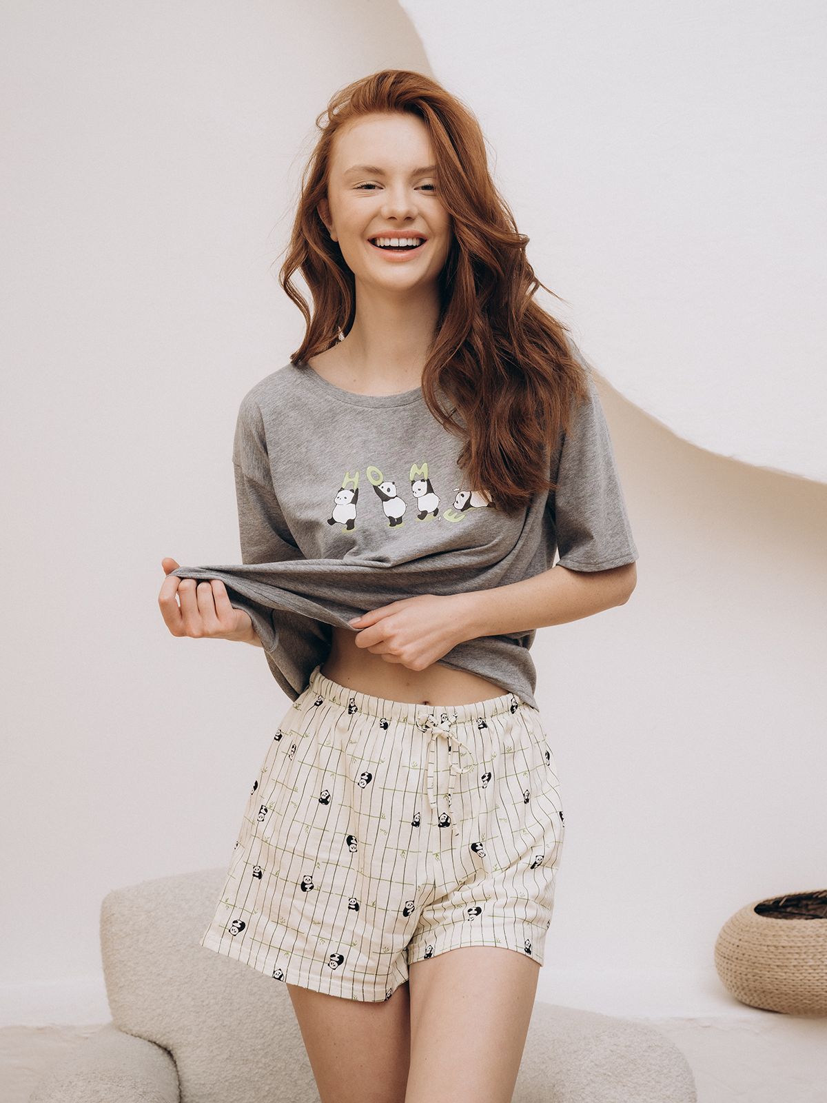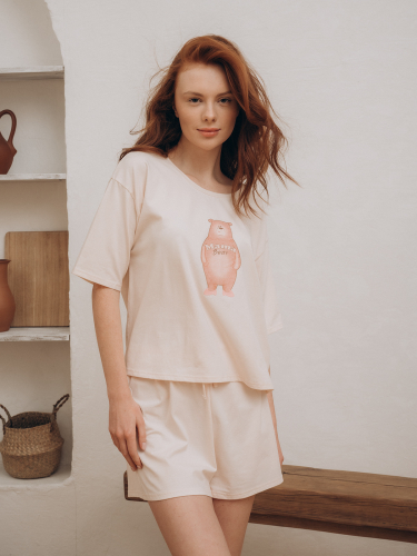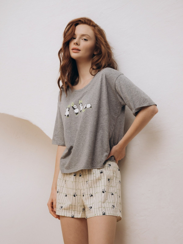 Стильная домашняя одежда от торговой марки Индефини в виде футболка с шортами, самая популярная, можно носить в любое время года. Такой вид одежды подарит комфорт и уют дома.
