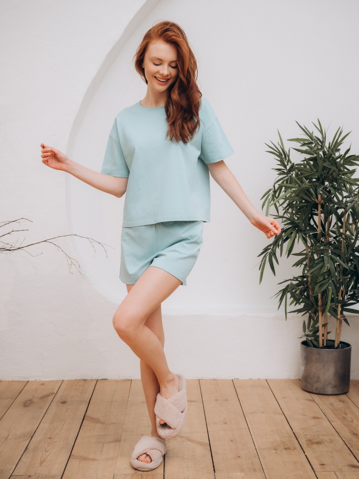 Стильная домашняя одежда от торговой марки Индефини в виде футболка с шортами, самая популярная, можно носить в любое время года. Такой вид одежды подарит комфорт и уют дома.