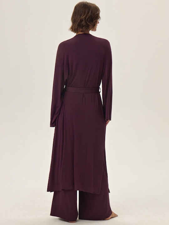 Сливовый 38(M) Длинный женский халат 42063 JULIETTE. Халат на запах с поясом, с длинными свободными рукавами. По бокам разрезы. Ткань - вискоза. 95% вискоза, 5% эластан