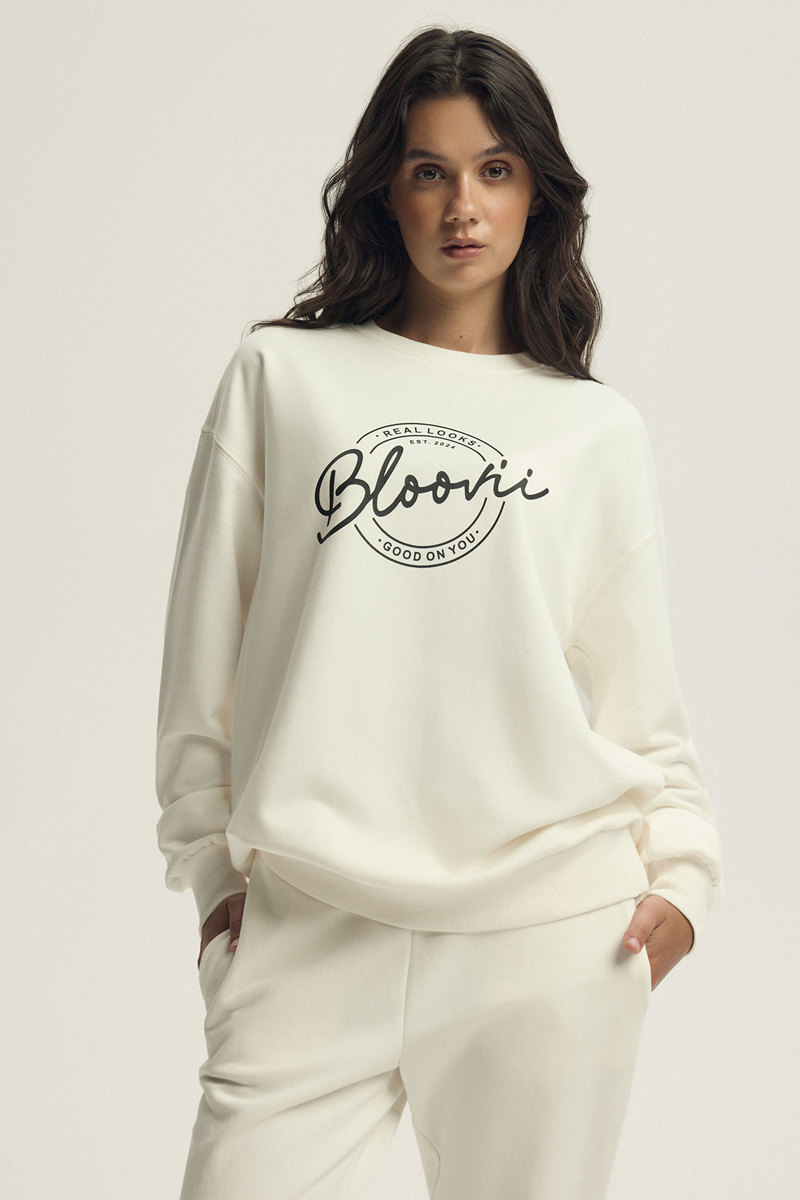 Толстовка женская от европейского производителя Bloovii by Esotiq. Толстовка с длинными рукавами на манжетах. Круглый вырез горловины. Толстовка очень комфортная и приятная к телу. Спереди надпись. 58% хлопок/ 42% полиэстер