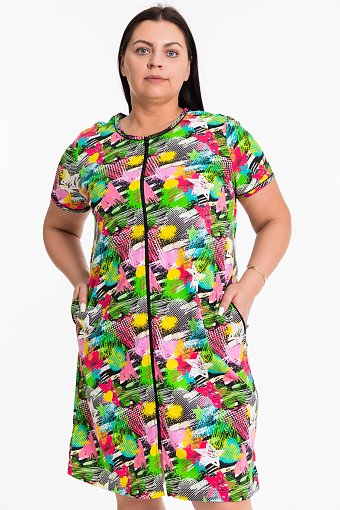 Женский халат — отличный выбор для домашнего отдыха. Халат изготовлен из мягкой и приятной к телу ткани — кулирки реактив с набивным рисунком. Центральная застёжка на молнию и боковые карманы делают эту модель функциональной, а разрезы по бокам обеспечивают свободу движений. Круглый вырез горловины, низ рукавов и вход в карманы обработаны бейкой из основного полотна с кантом, что придает изделию оригинальность. Изготовленный из натуральной ткани, халат обеспечит комфорт в течение всего дня.